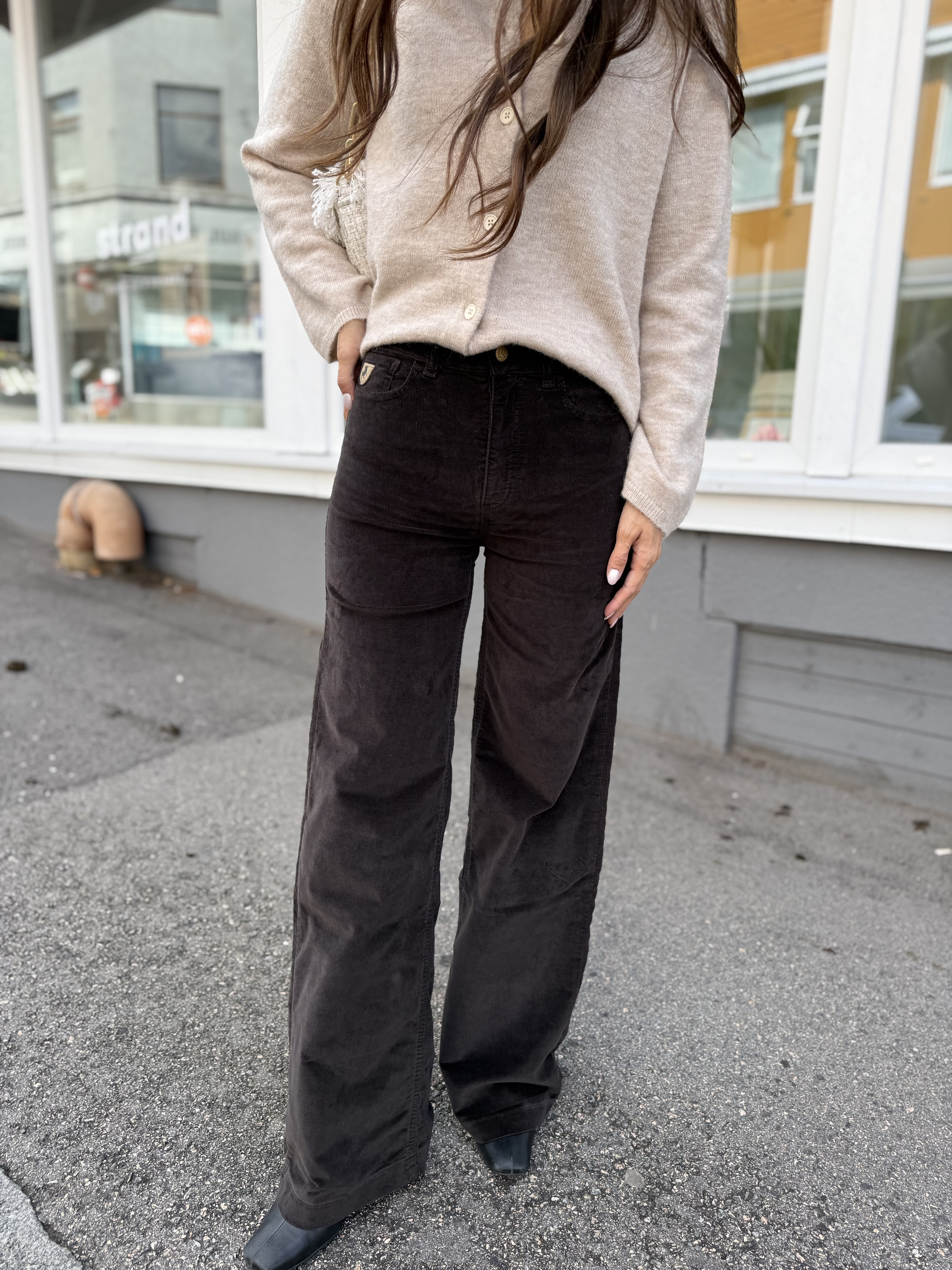 "Palazzo"- modellen fra Lois i vasken ""Chocolate Brown". Denne jeansmodellen har høyt liv, god stretch og vide bein. Kan oppleves noe stor på størrelsen, gå ned på størrelse hvis du vipper. Buksen er i nydelig brun kordfløyel.