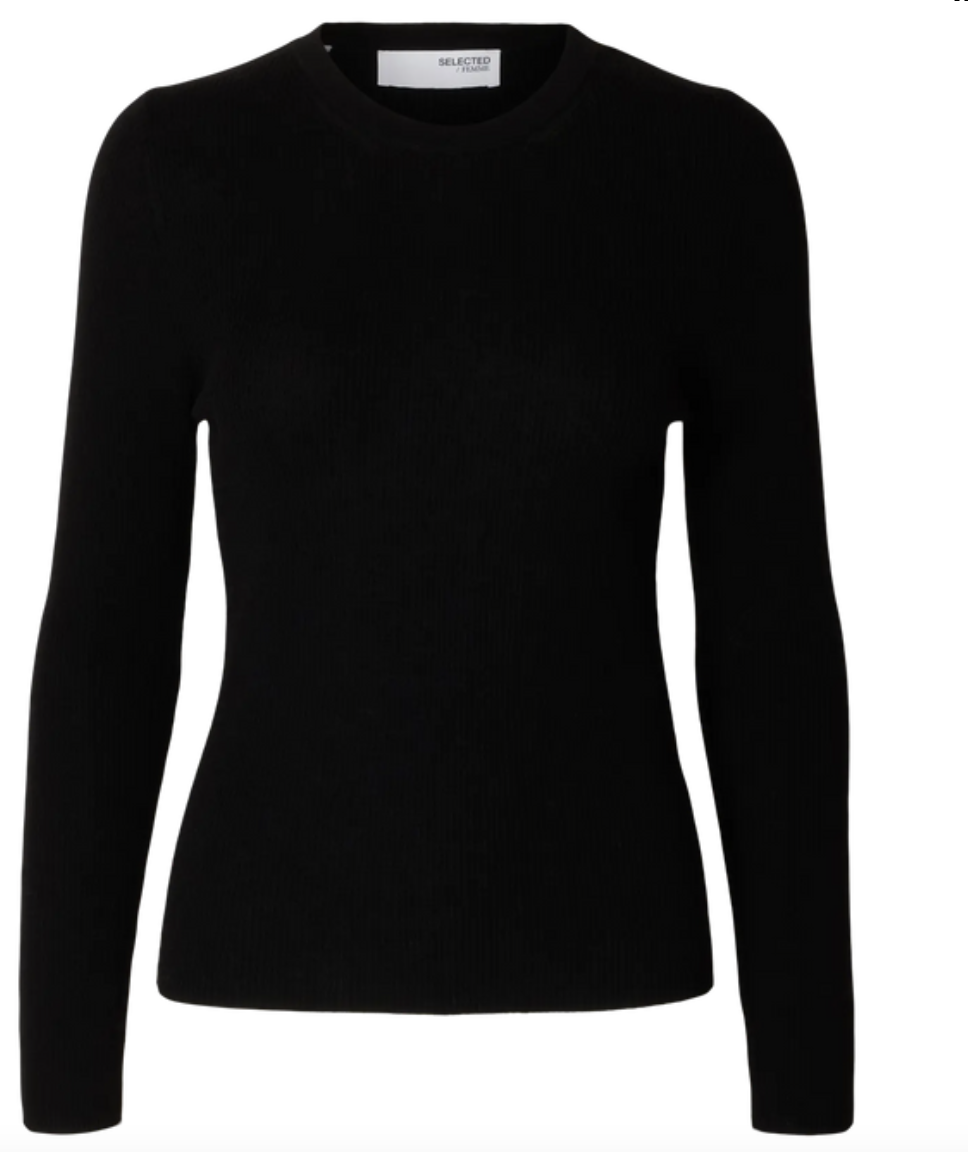 "Ingrid Knit O-Neck" fra Selected. Femme. Super fin basic som alle burde ha i garderoben. Ingrid knit er en enkel ribberstrikket genser, den har en tettsittende passform med lange ermer og o-hals.