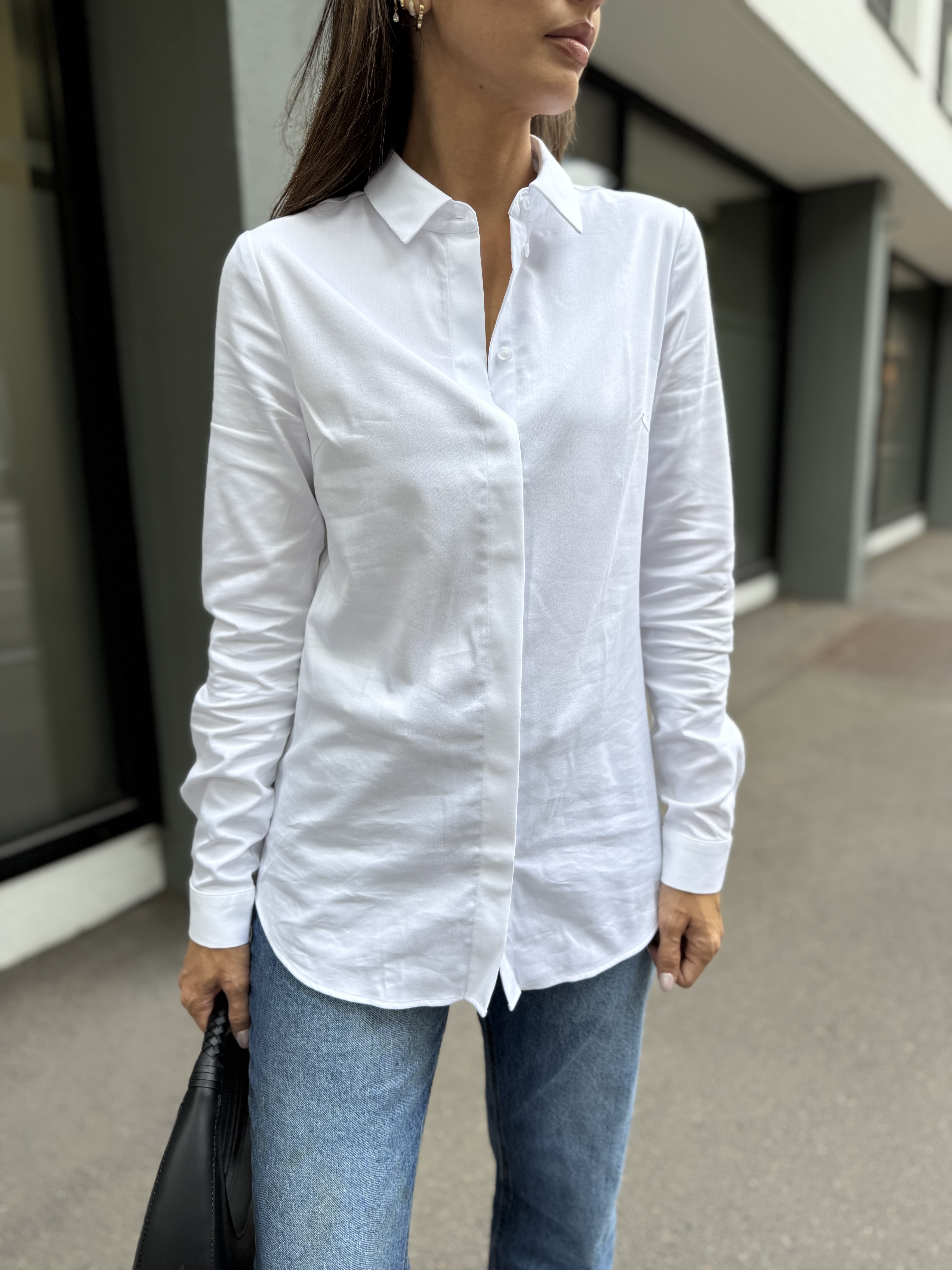 Romie Fitted Shirt - Bright White er en klassisk, litt innsvinget skjorte med striper og knappelukning.