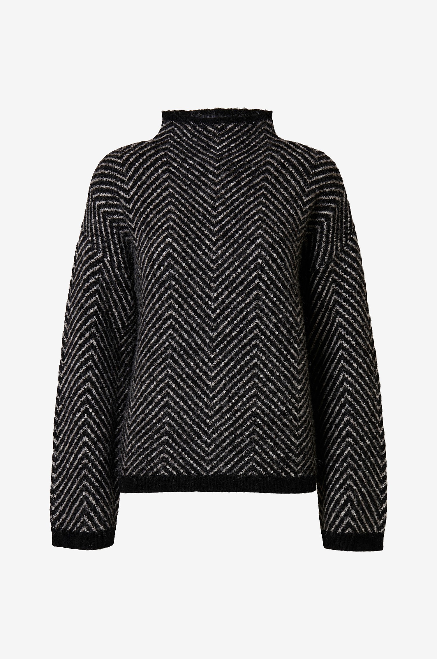 "Lulu Herringbone Knit" fra Selected Femme. Superfin strikkegenser fra Selected Femme med et klassisk og tidløst herringbone-mønster. Lulu Herringbone Knit har lange ermer med senket skuldersøm. Genseren har rett passform, høy hals og kontrasterende kanter.