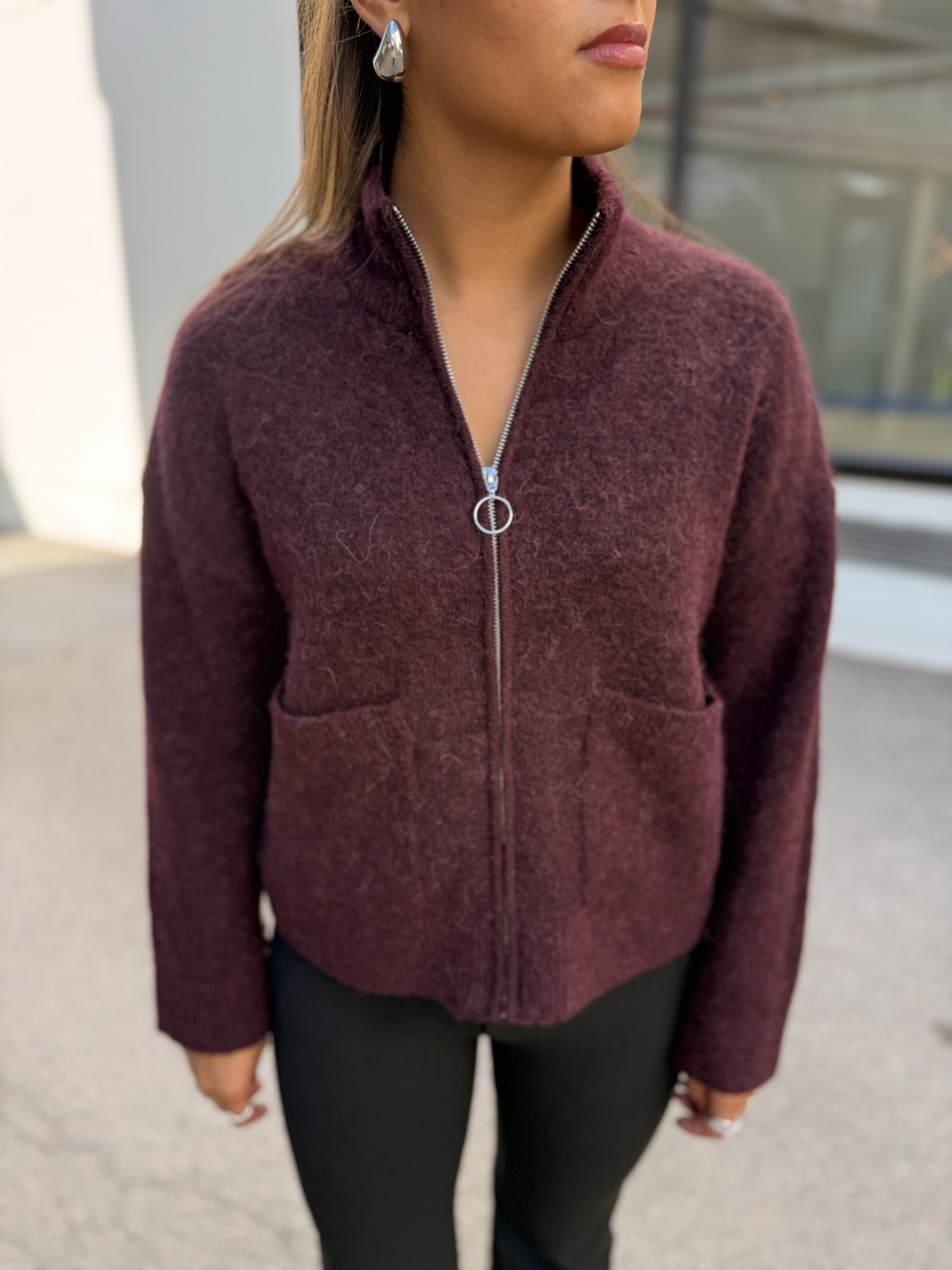 «Sia ras zipper knit cardigan» fra Selected Femme er en deilig og myk oversized strikket cardigan med store lommer foran og høy krage. Sia cardigan lukkes med glidelås.