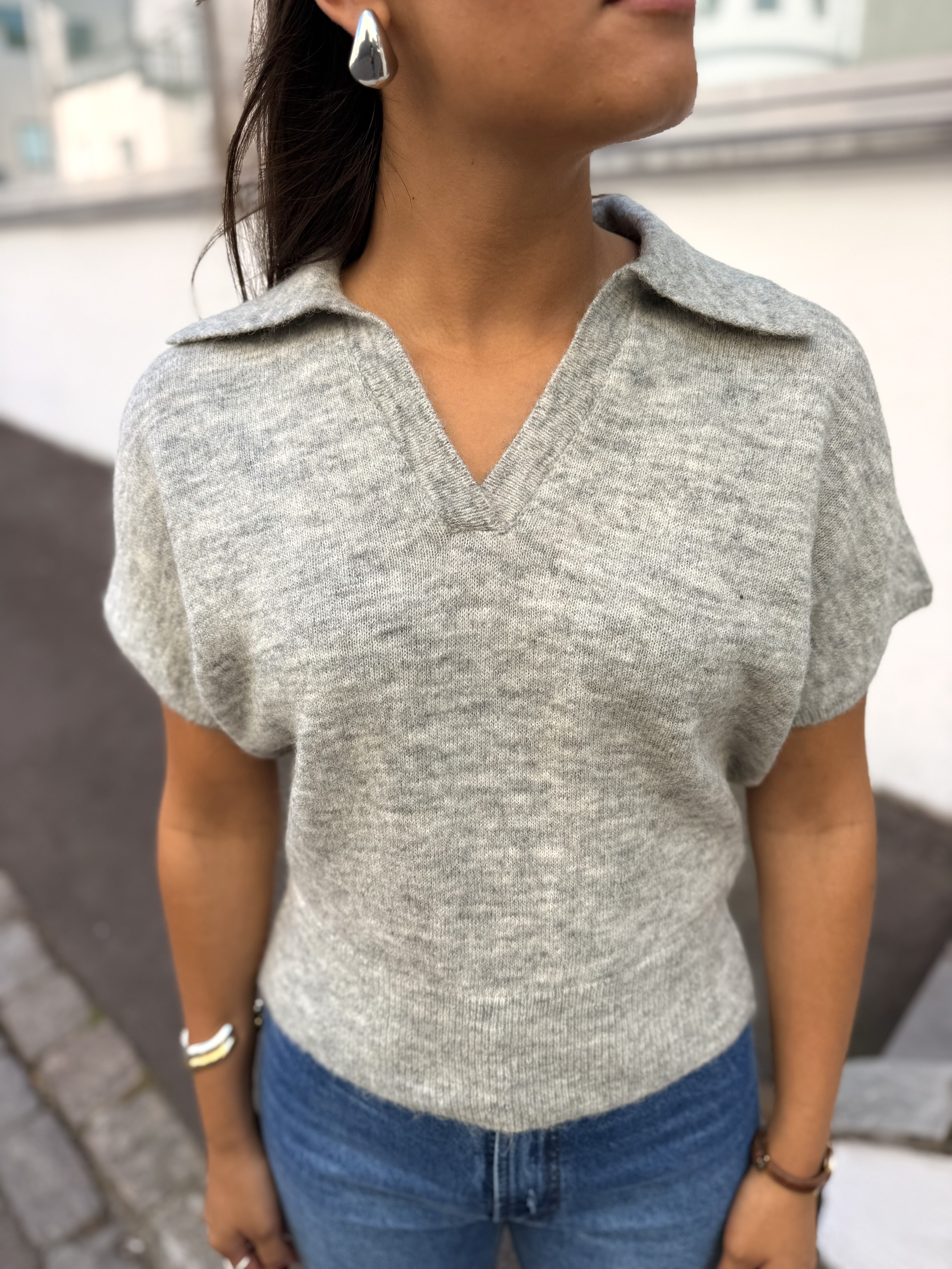 "Lulu Knit Polo" fra Selected Femme er en lekker strikket polo vest med nydelig V-hals, korte ermer og lekker krage. Poloen har en vanlig passform og er normal i størrelsen.