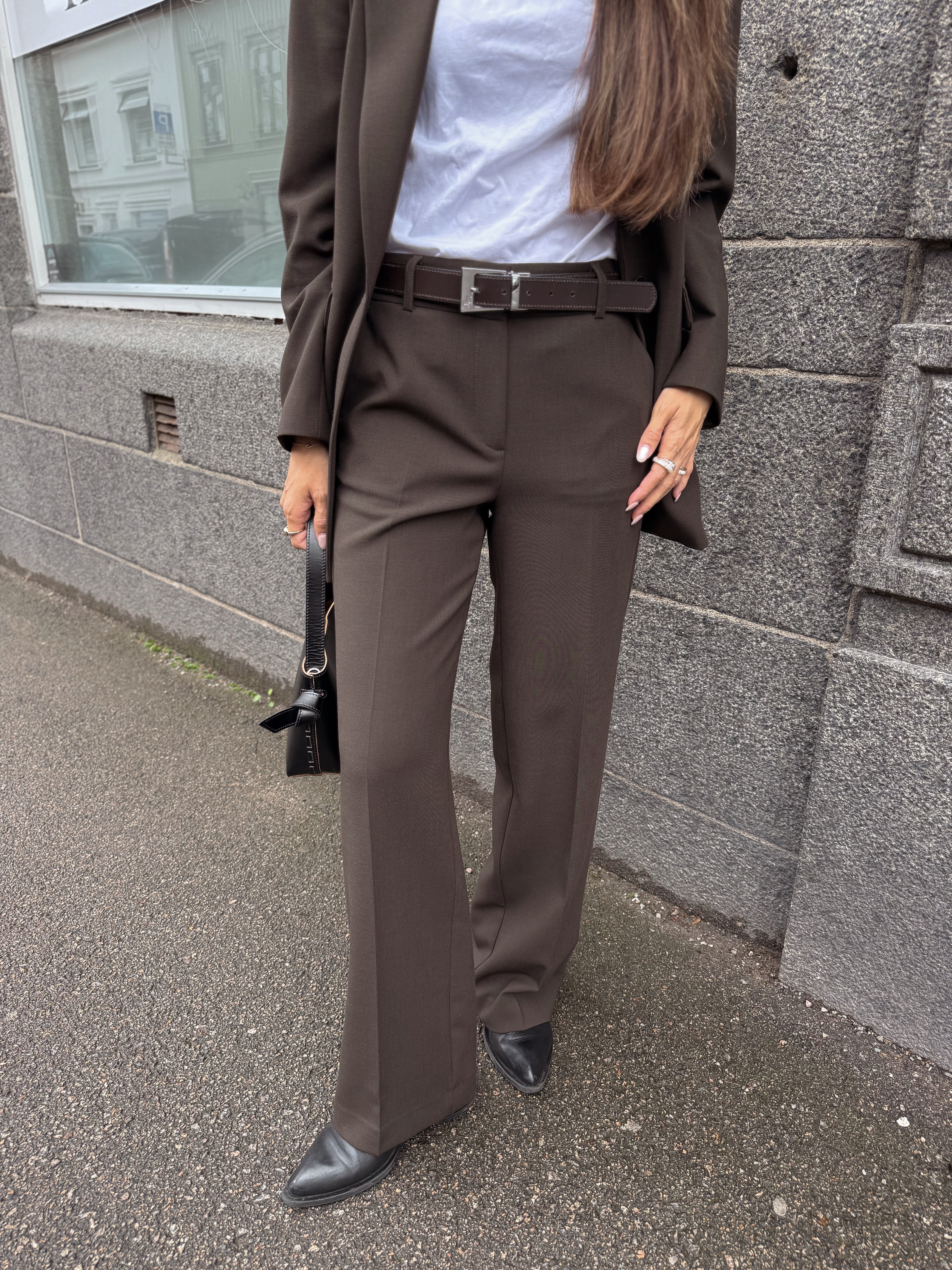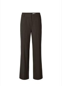 "Rita wide pant" fra Selected Femme er en klassisk sort dressbukse som passer til alt. Kan pyntes med en lekker bluse eller like fint med en strikkegenser. Den sitter over rumpe og lår, mens den er løs i beina. Buksen har to lommer foran og har beltestropper.