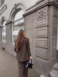 Laget av: 49% Resirkulert polyester, 42% Viskose, 9% Elastan