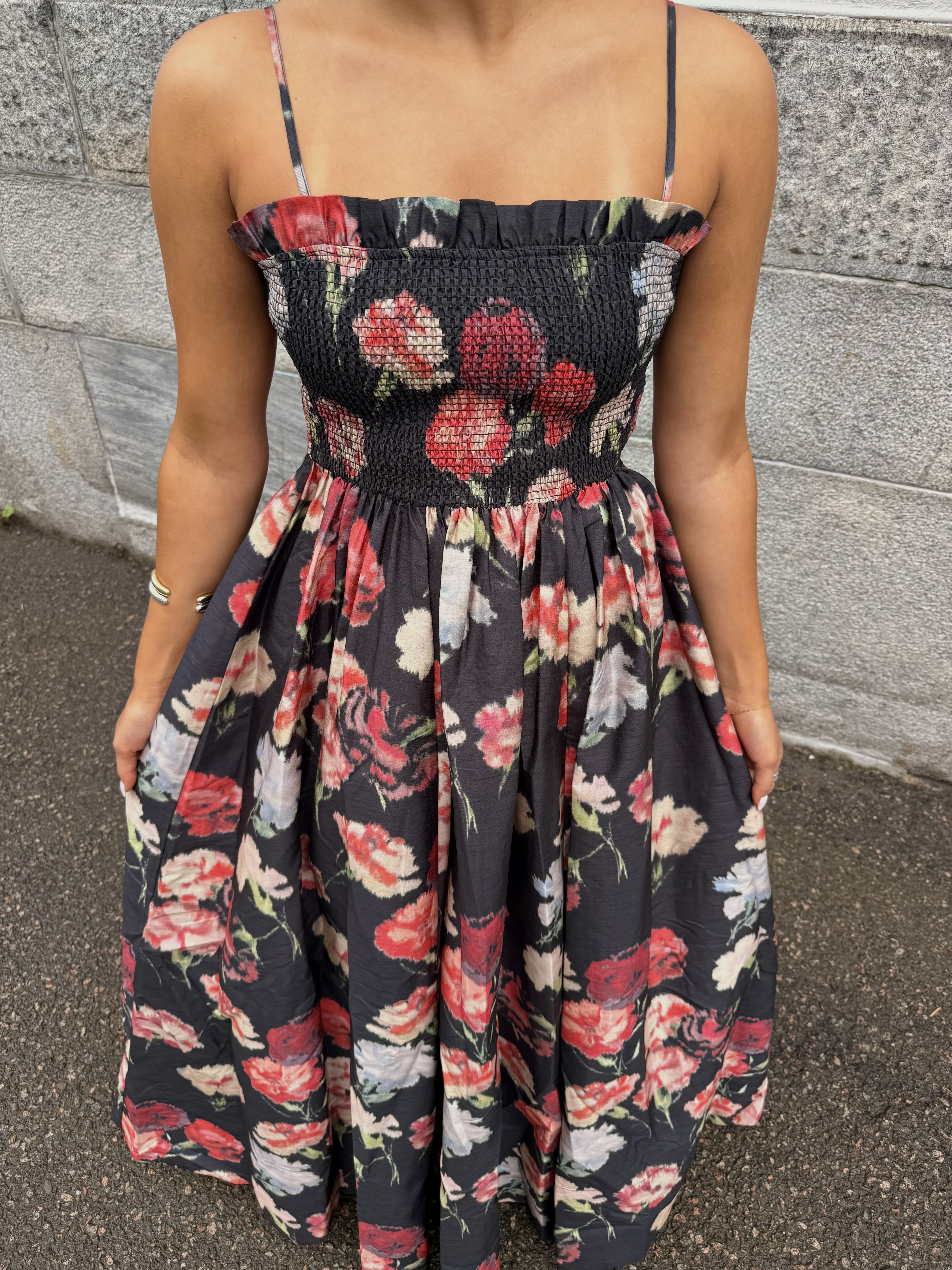 «Taffeta Gown» fra byTiMo. Super lekker stroppe kjole, kuttet i byTiMo sitt skinnende, tunge og luksuriøse sertifiserte kvalitet. Kjolen har tett siluett og ett stort a formet skjørt med volum.
