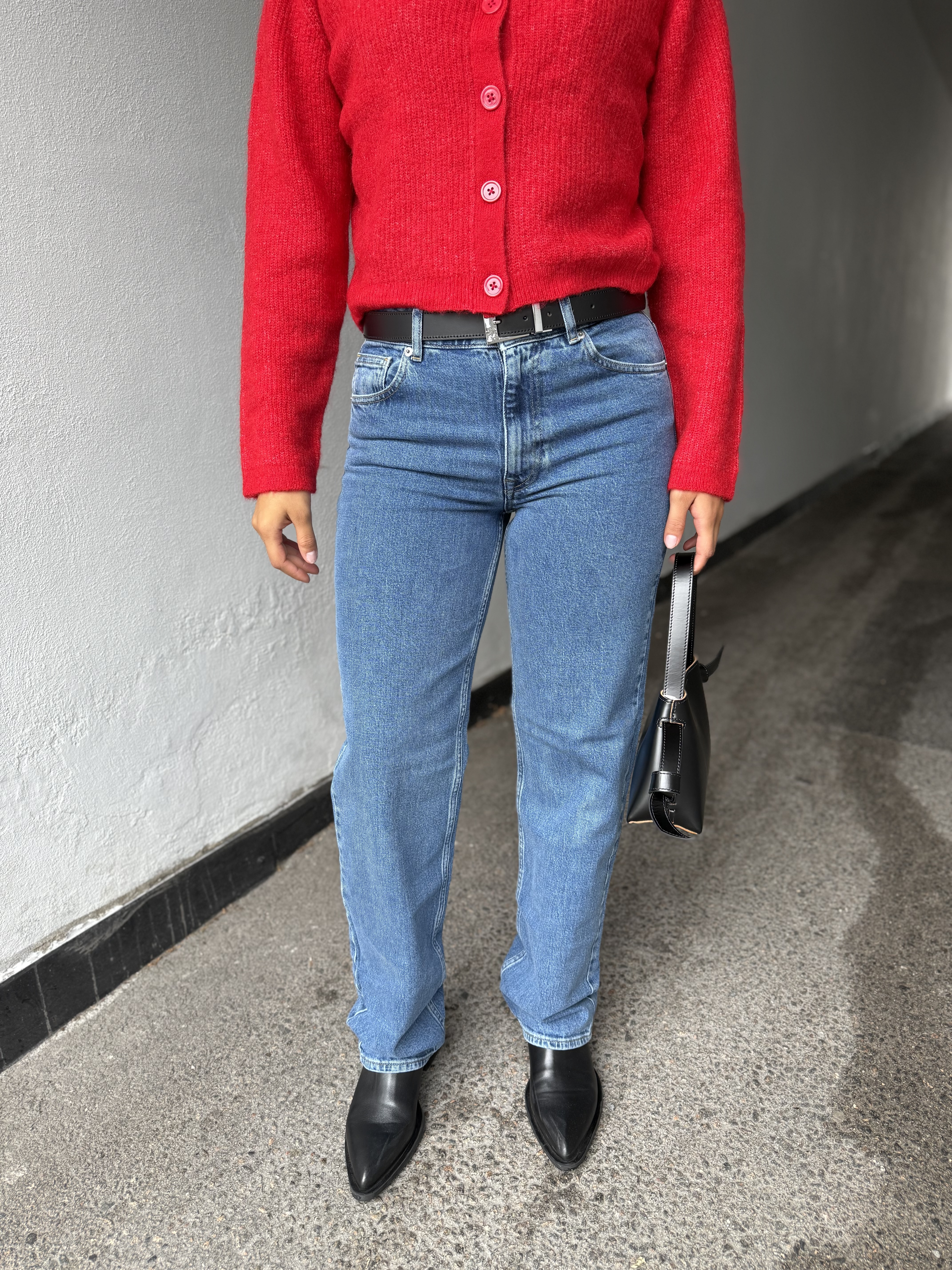Straight Bea-Kori Mw Jeans fra Selected Femme. Klassiske, kule jeans med straight fit og high waist midje. Buksen har fem lommer og lukkes med glidelås og knapper. Den perfekte jeansen i basegarderoben!