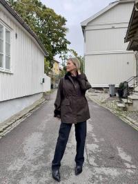 Jakken har en rett passform. Kan strammes inn i midjen for en mer innsvinget passform.