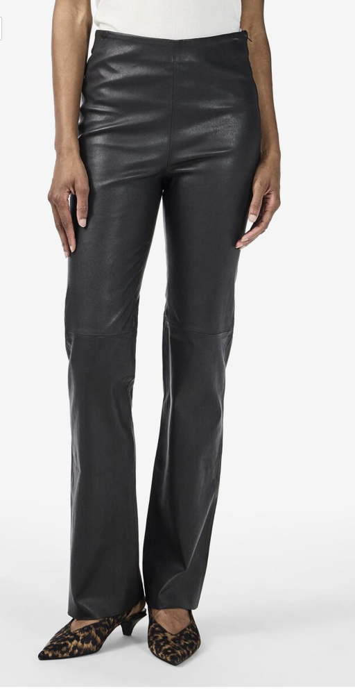 “Zellu Leather Pant” fra YAS i fargen svart. Skinnbukse med høyt liv og glidelås i siden. Bootcut og normal i størrelsen.