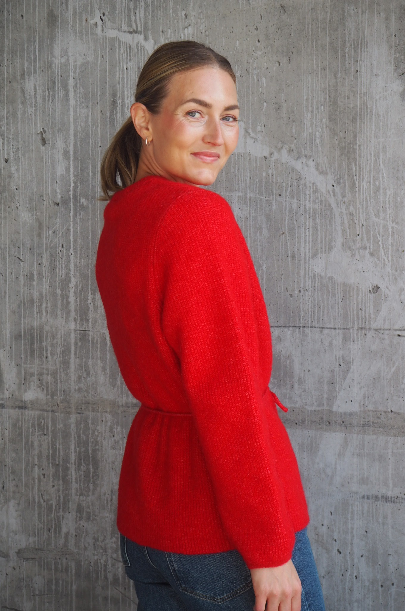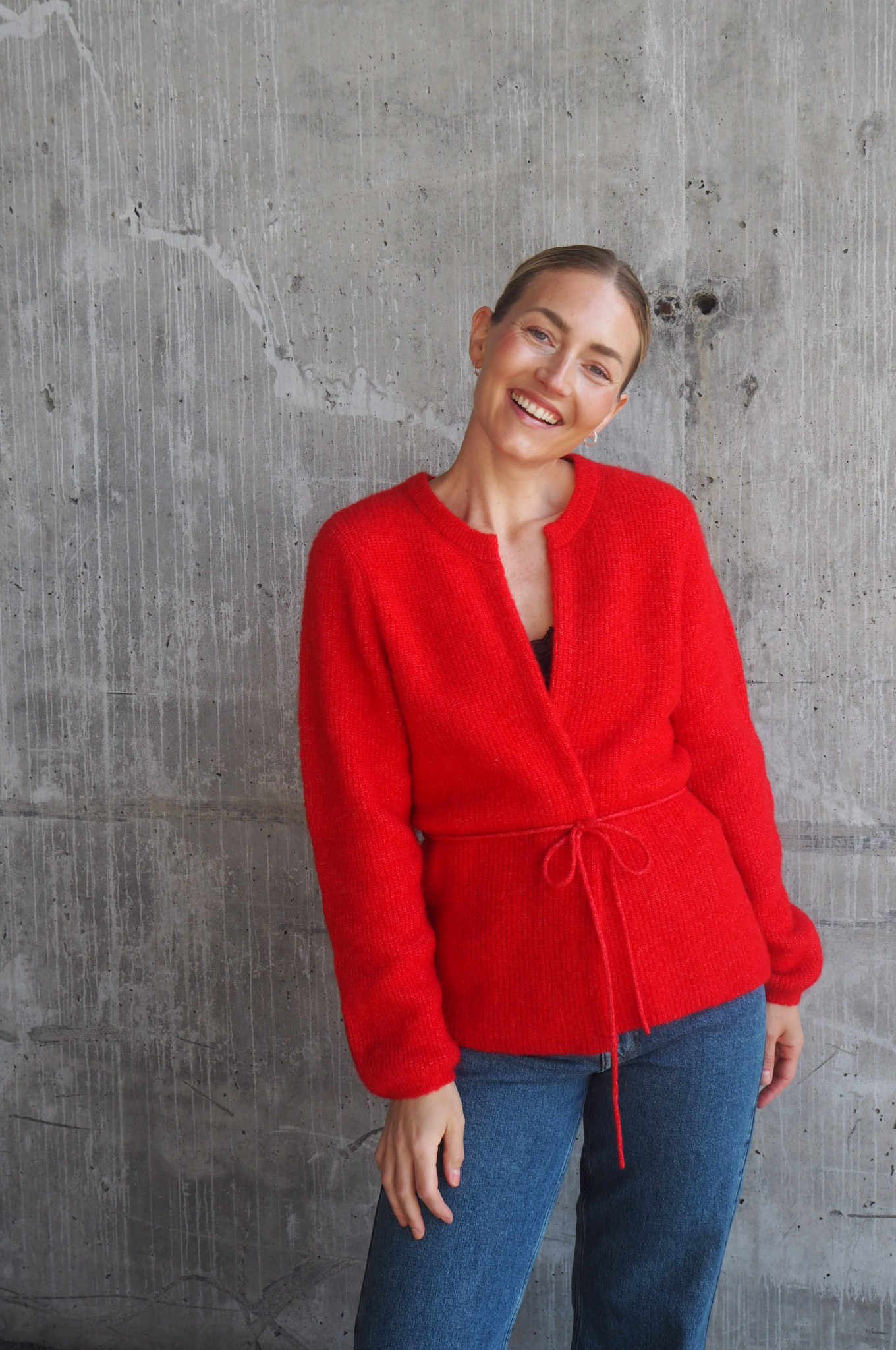 Sia Ras Knit Belt Cardigan - Equestrian Red