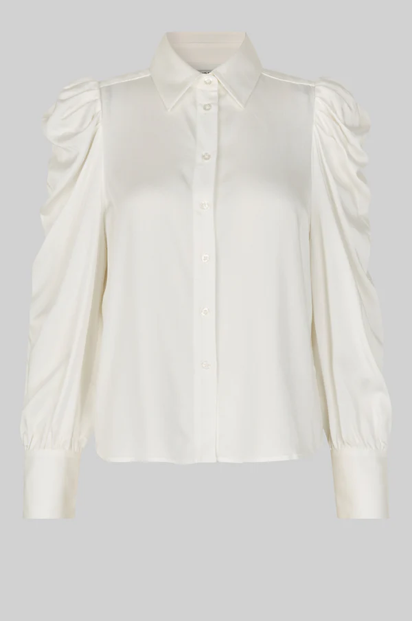 «Samanta shirt» fra Second Female. Vakker skjorte med knapper. Skjorten er laget i en myk og fallende viskoseblanding. Har vanlig krage og stolpe med knappelukking foran. Ermer i fårefarget materiale med mansjetter med knapper. Formsydd kant nederst. Normal passform.