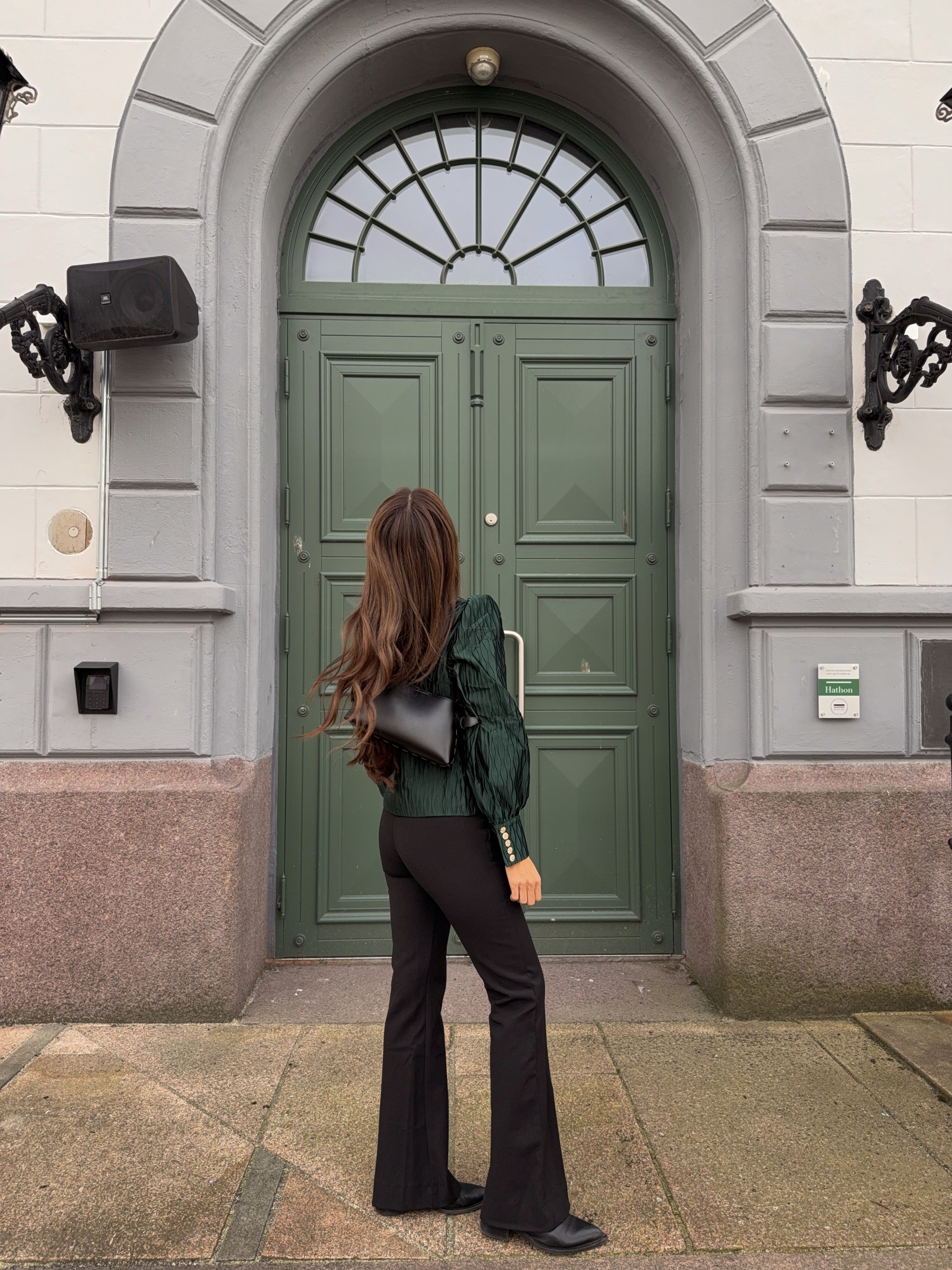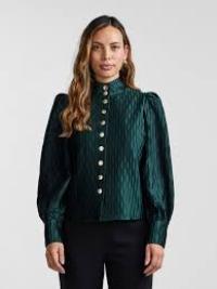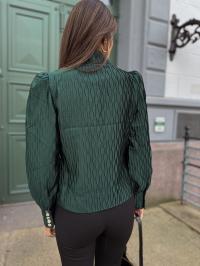 «Ripple shirt» fra YAS. Lekker sort skjorte med høy hals og ballongermer. Lukkes med gull-knapper.