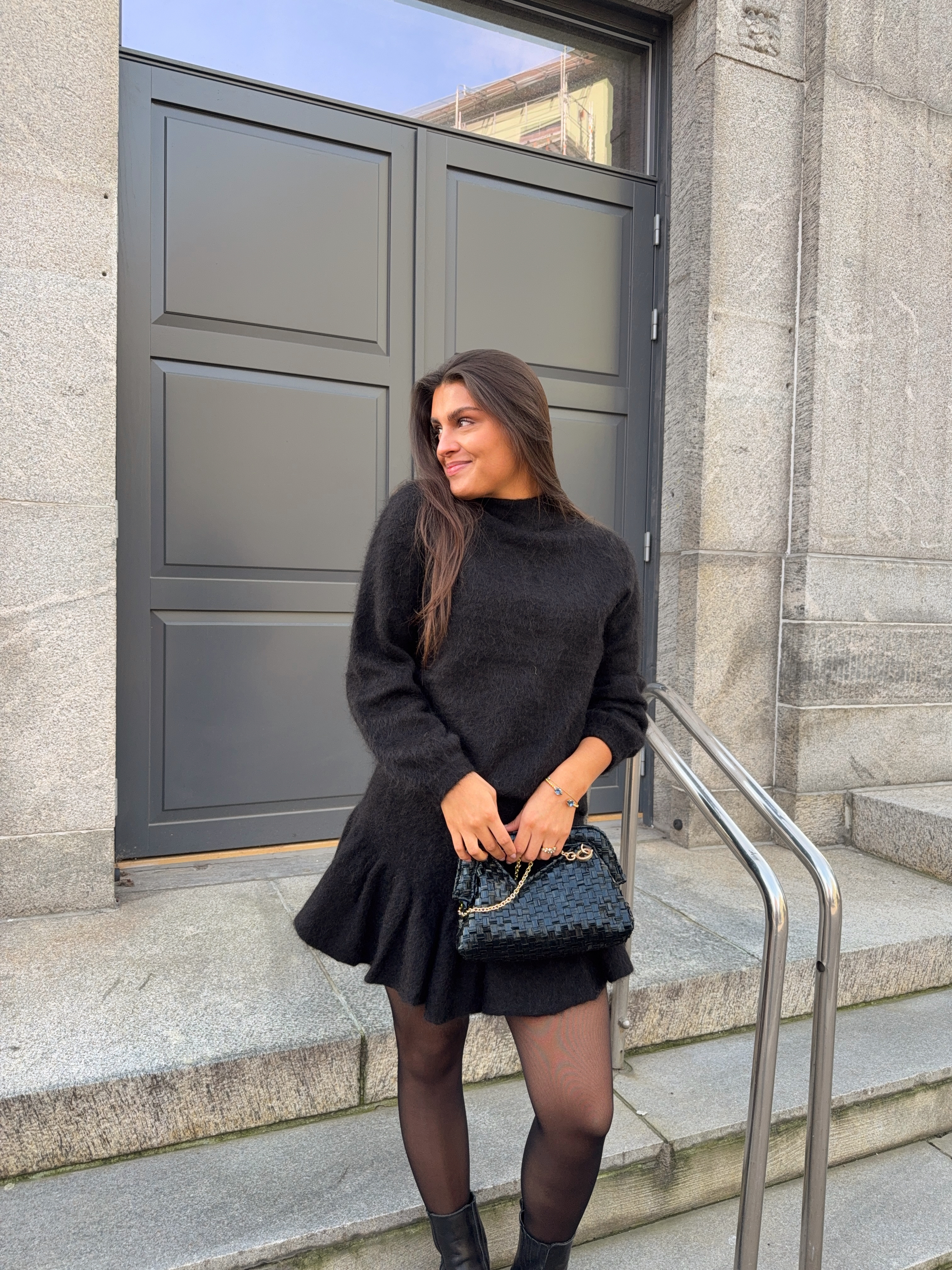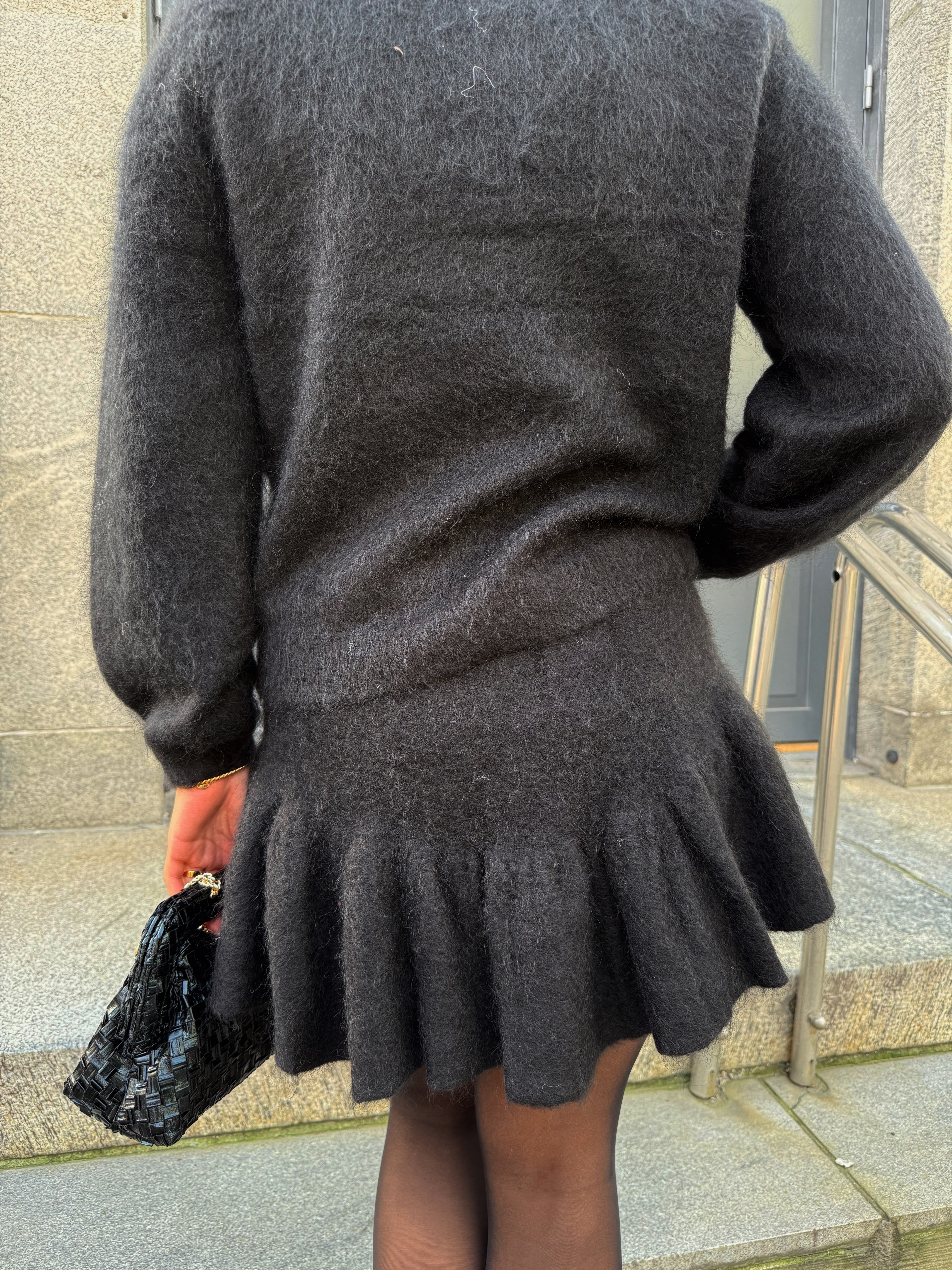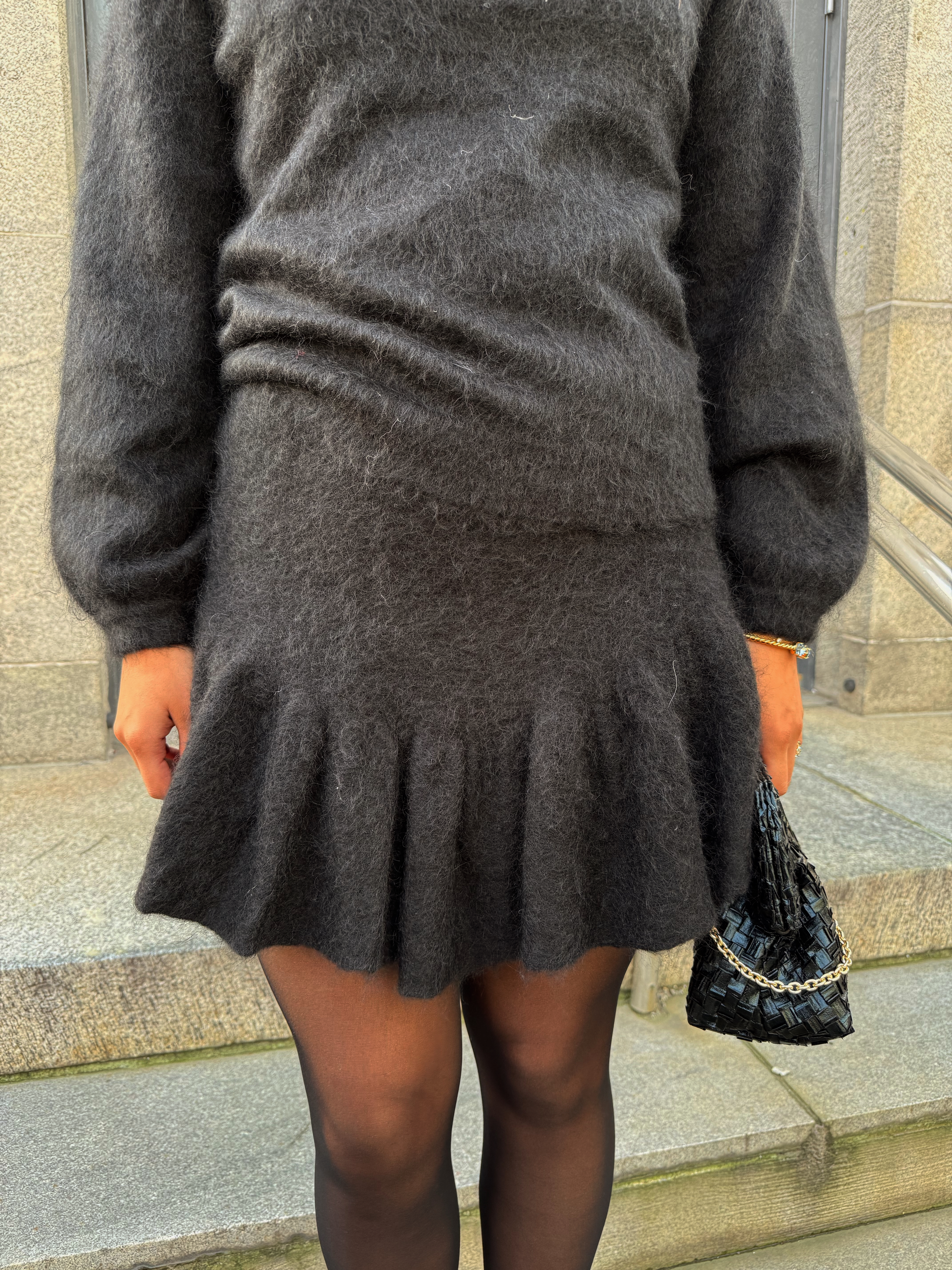 Leken og lun – knit frill skirt balanserer komfort og sjarm på perfekt vis. Laget i en myk strikkekvalitet med flatterende, elastisk midje, en moderne lengde og et feminint preg med delikat volangkant. Bruk den sammen med vår Boxy Cardi eller turtle sweater for et gjennomført uttrykk, eller style den opp til en kveld ute.