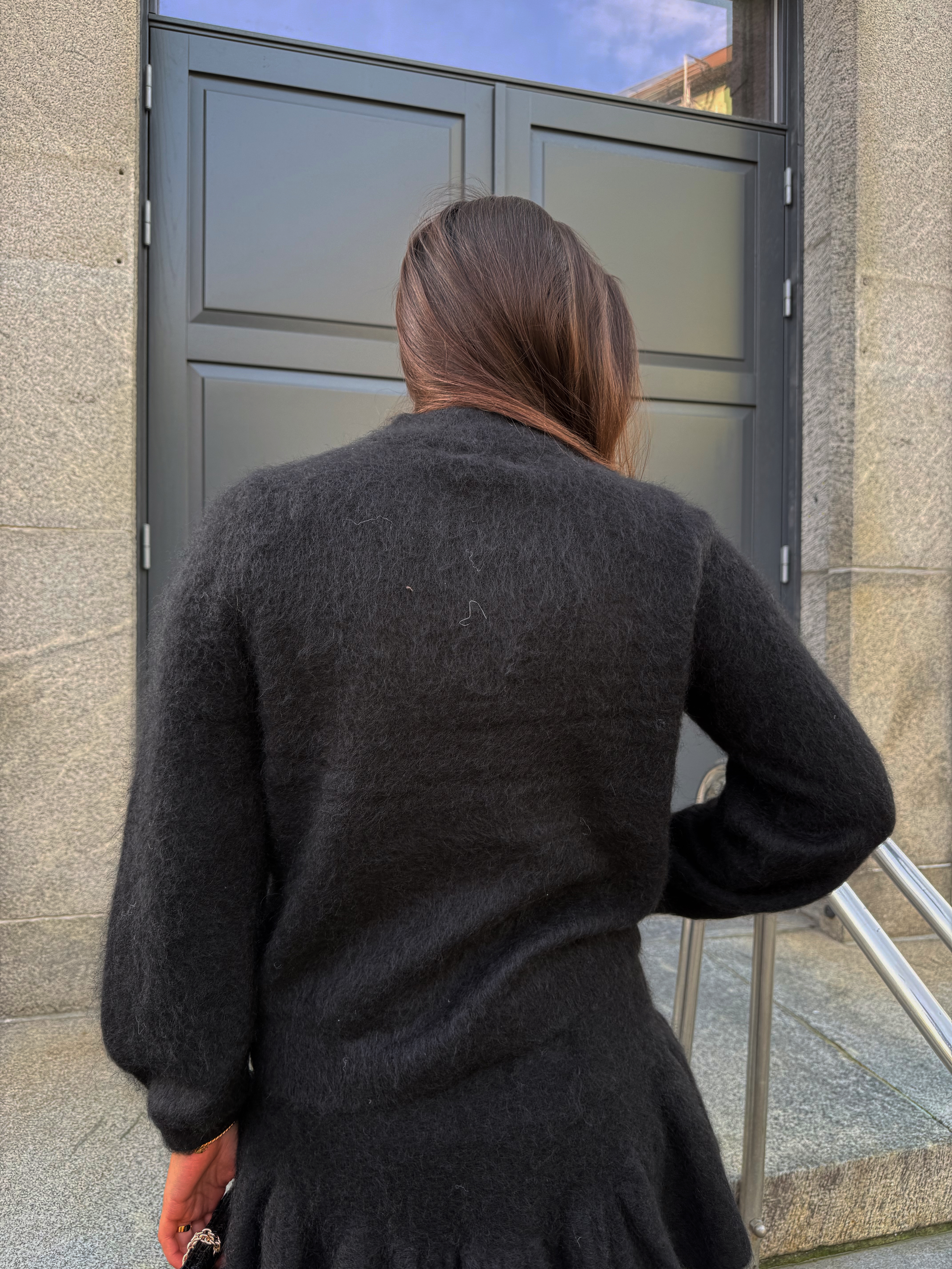 Ullblanding – 33 % ull, 33 % kid mohair, 28 % nylon, 6 % spandex.