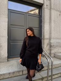 Turtle Sweater har en myk halvhøy hals og en feminin, lett A-formet silhuett som avsluttes i en boxy passform. Elastiske mansjetter gir ermene et diskret ballongpreg og et feminint uttrykk. Bruk den sammen med knit frill skirt for et chic, helhetlig antrekk – eller style den med skreddersydde bukser for en elegant hverdagslook.