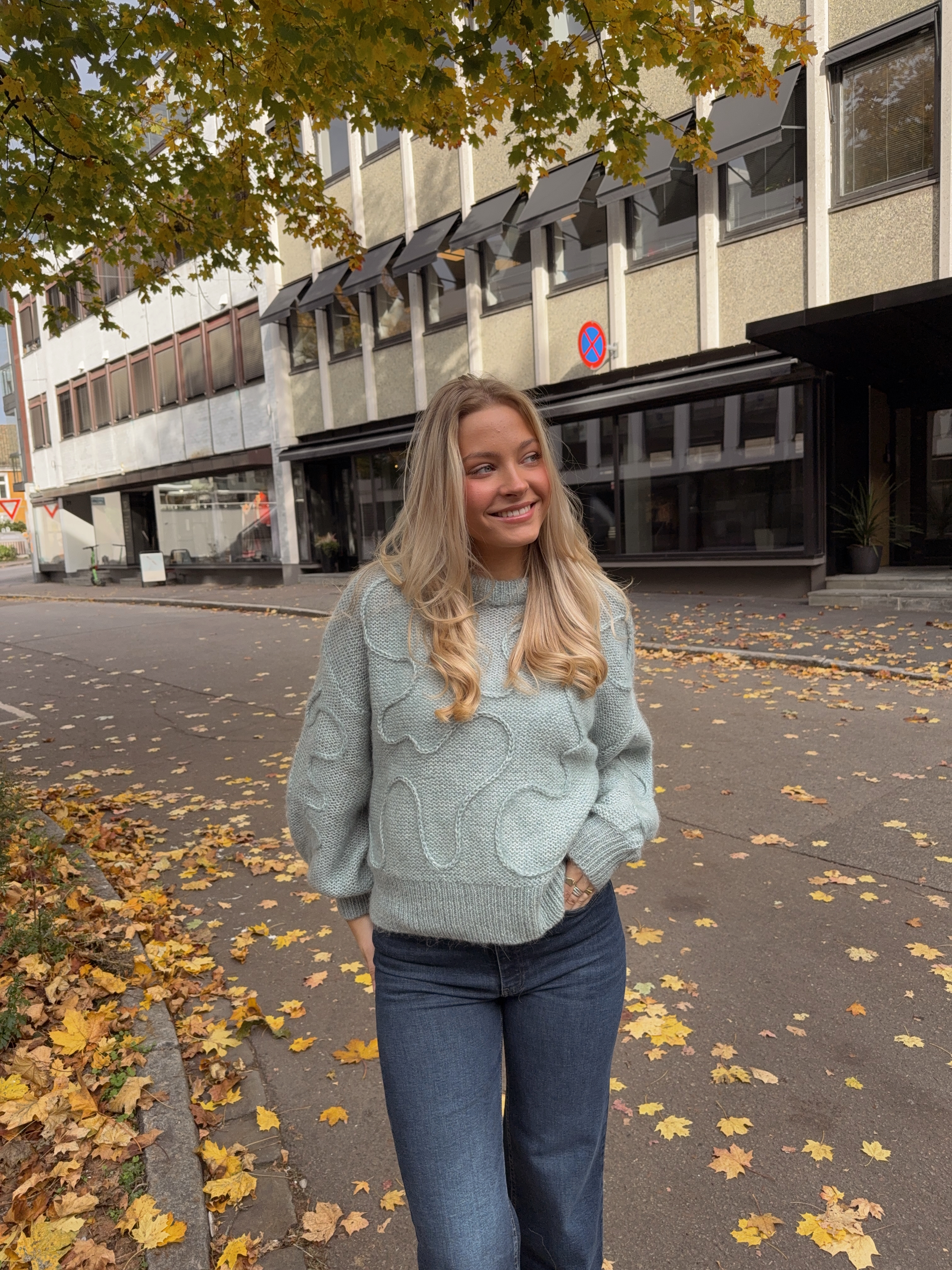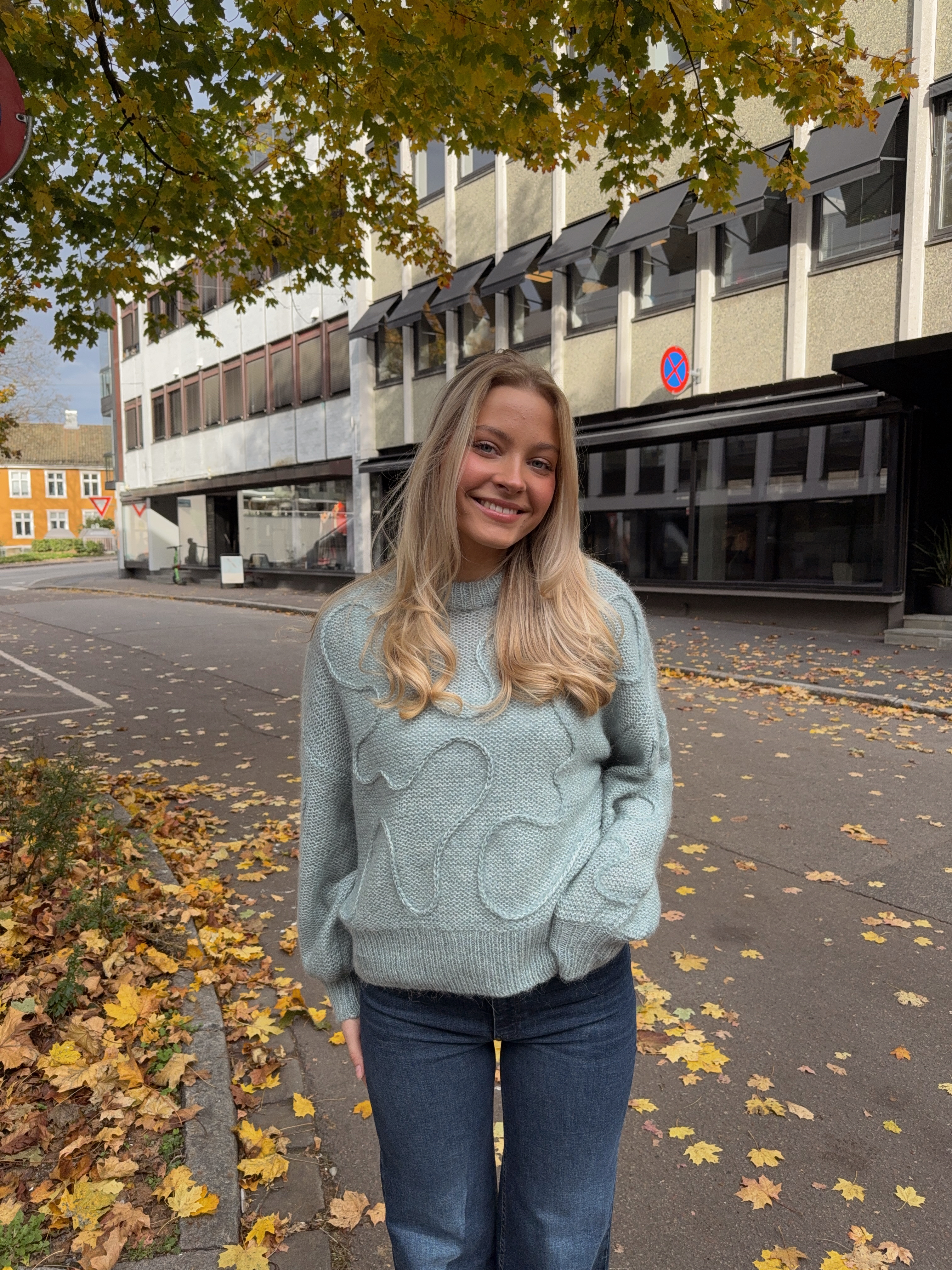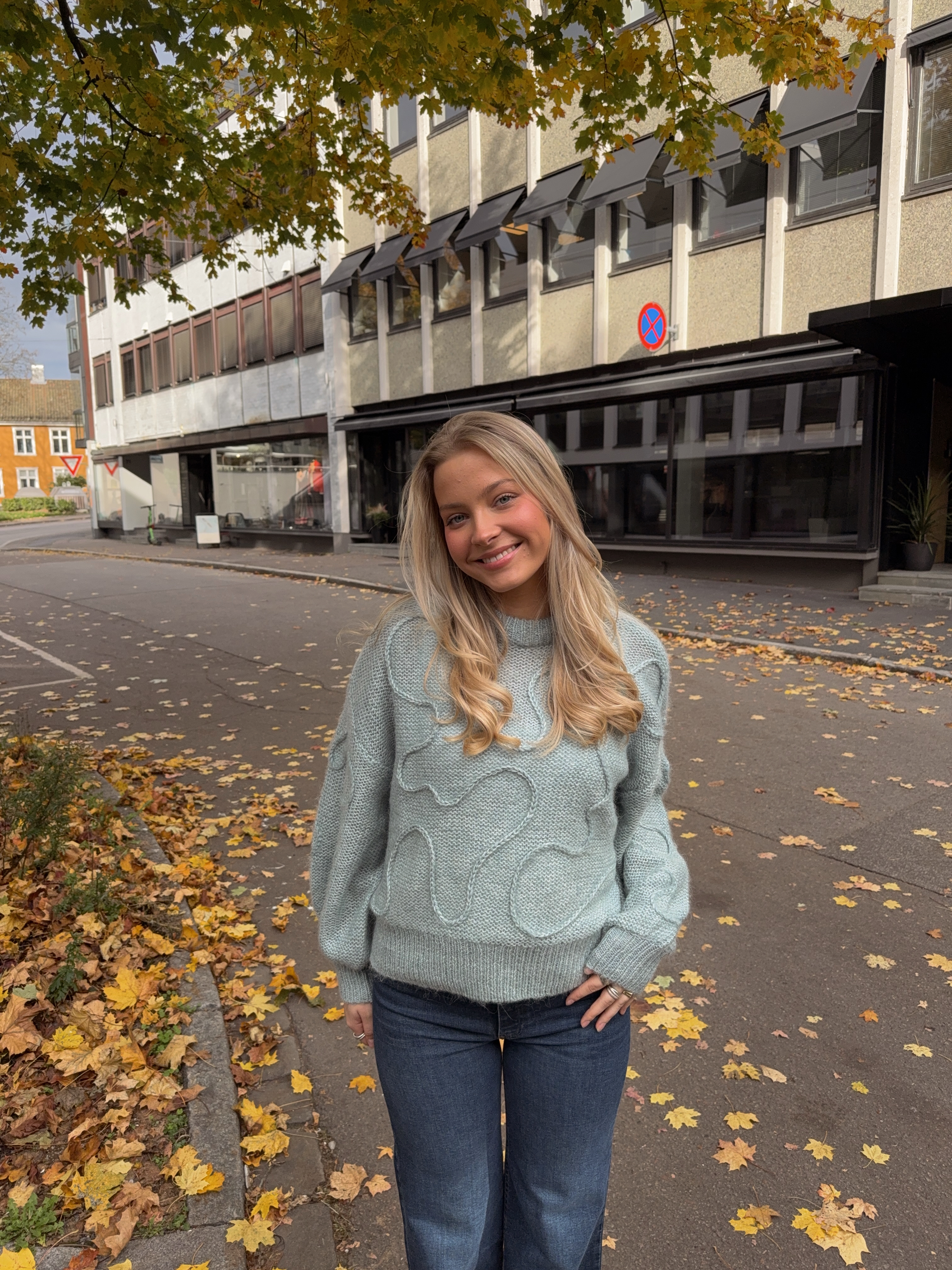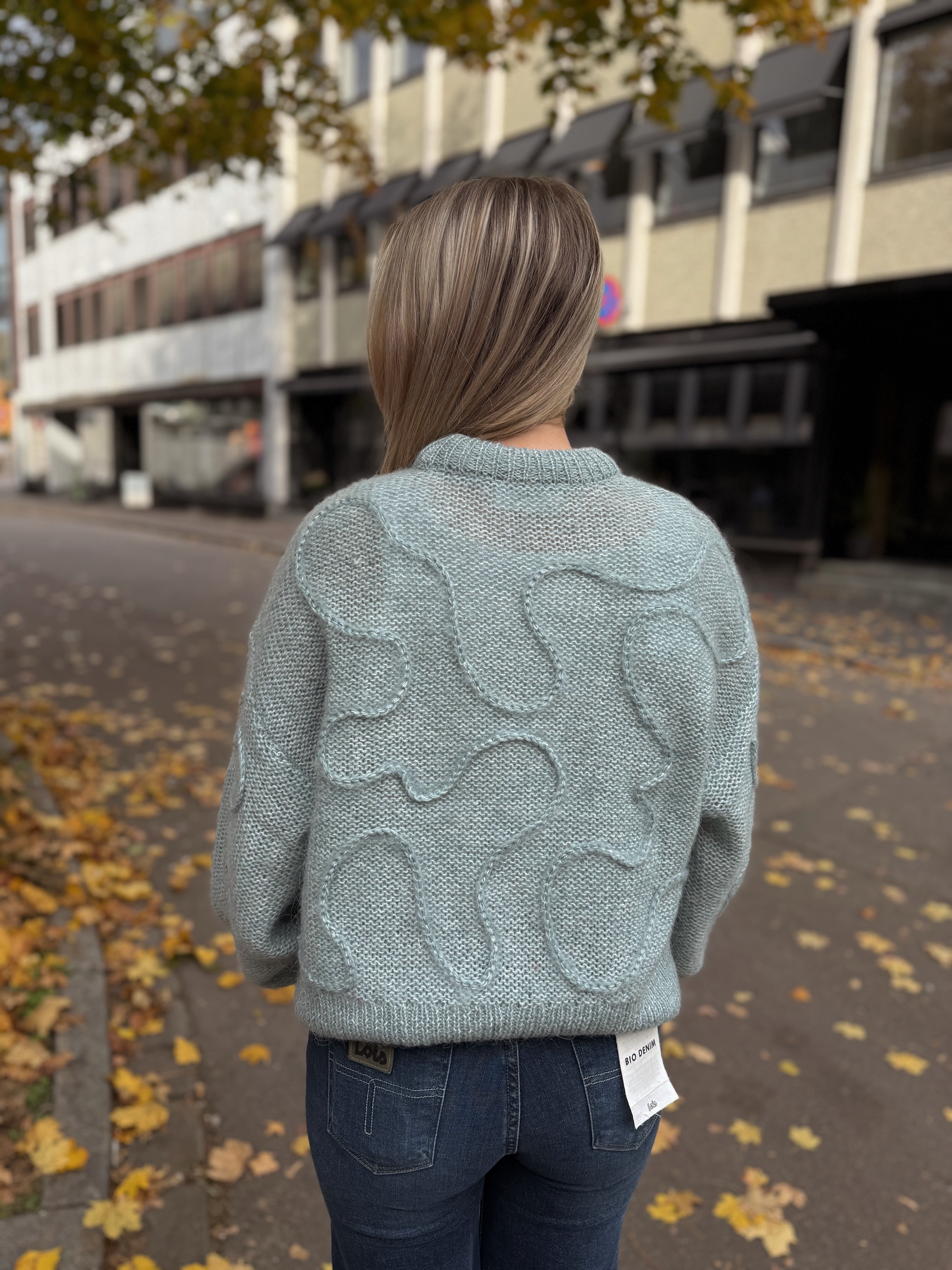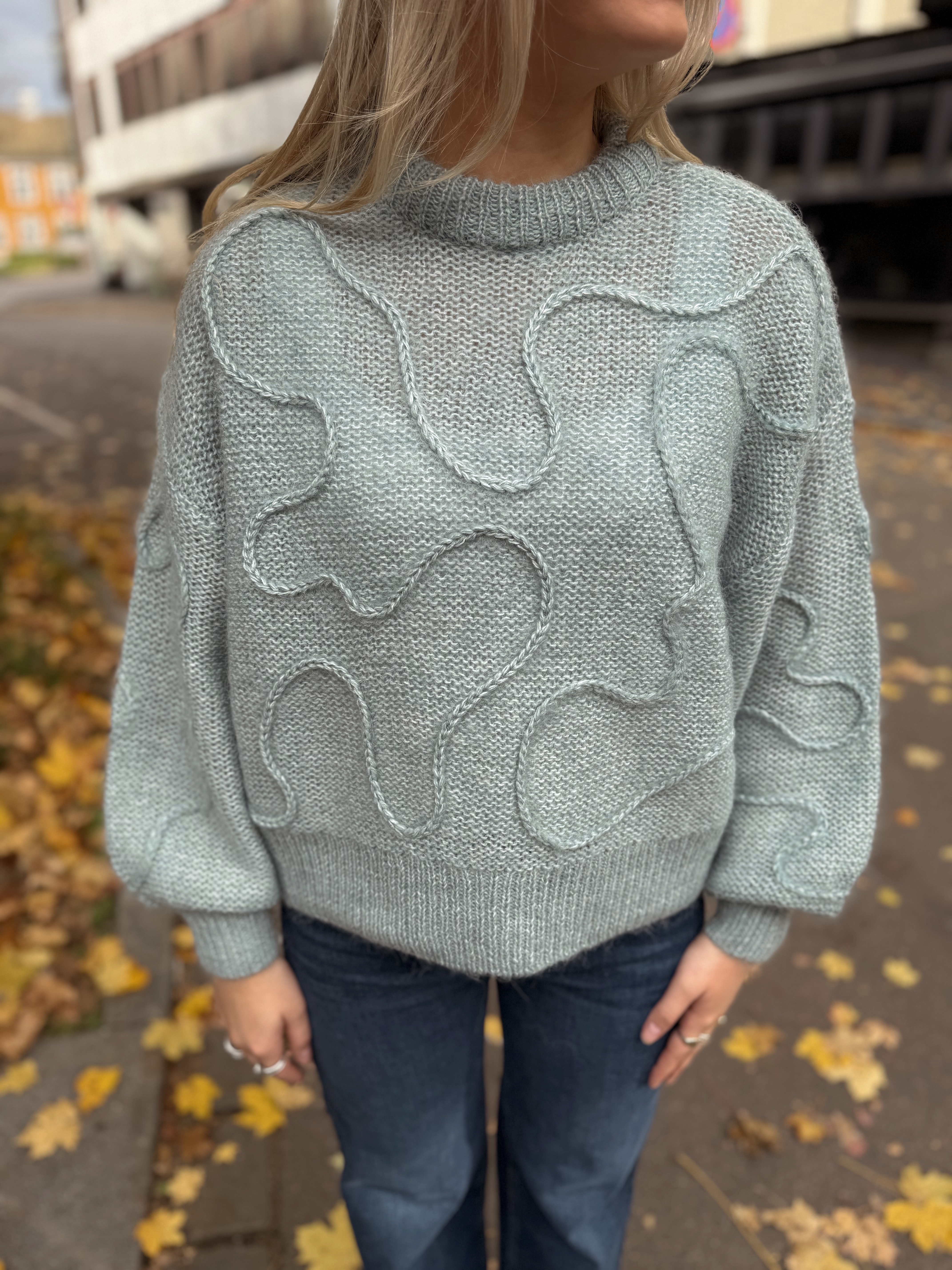 En lekker strikkegenser med veldig fine detaljer og struktur i stoffet.