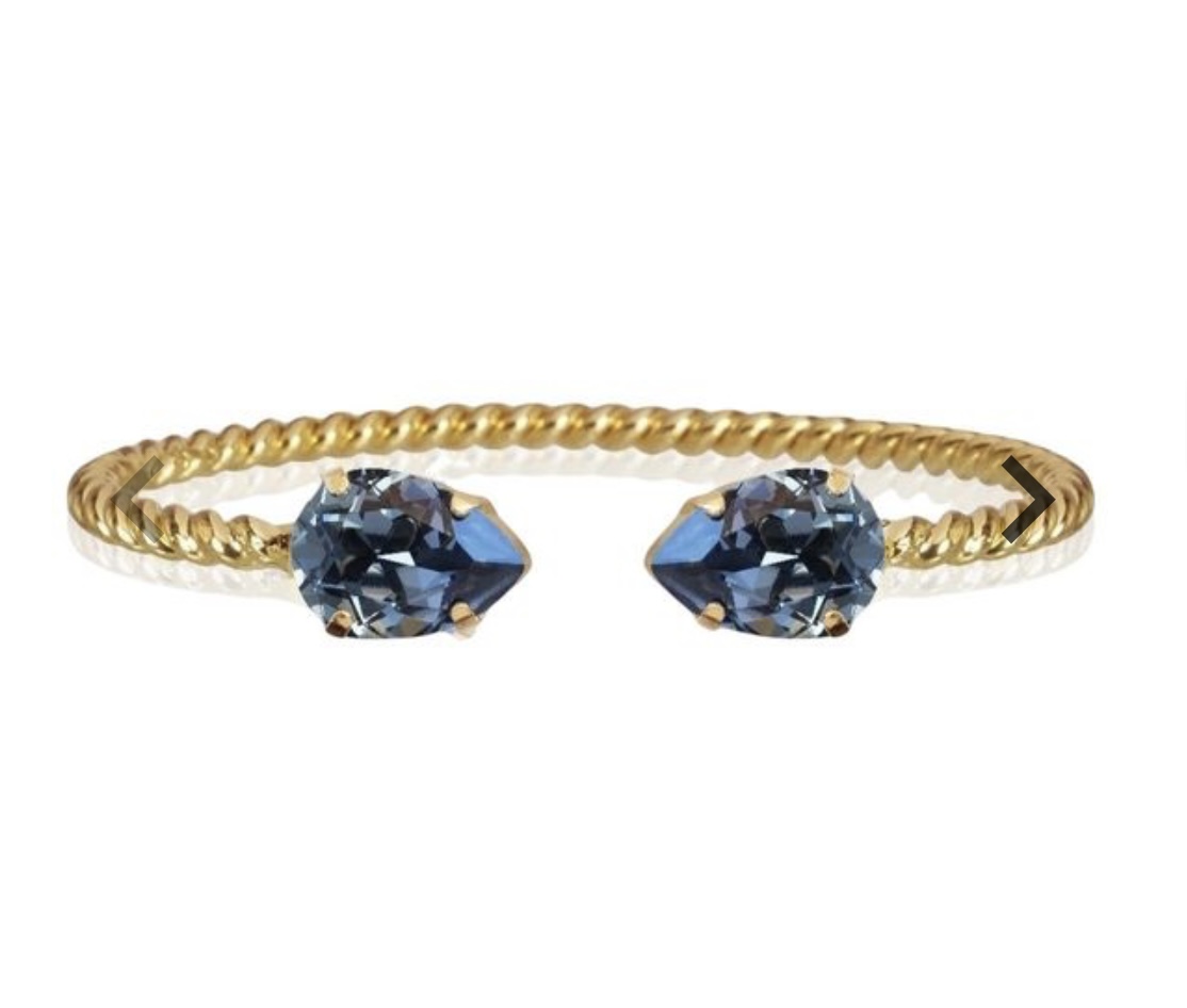 «Mini drop bracelet» fra Caroline Svedbom. Mini Drop-armbånd har to krystaller laget av høyeste kvalitet og en justerbar armring formet som et tau. Dette armbåndet er en perfekt detalj for enhver anledning.