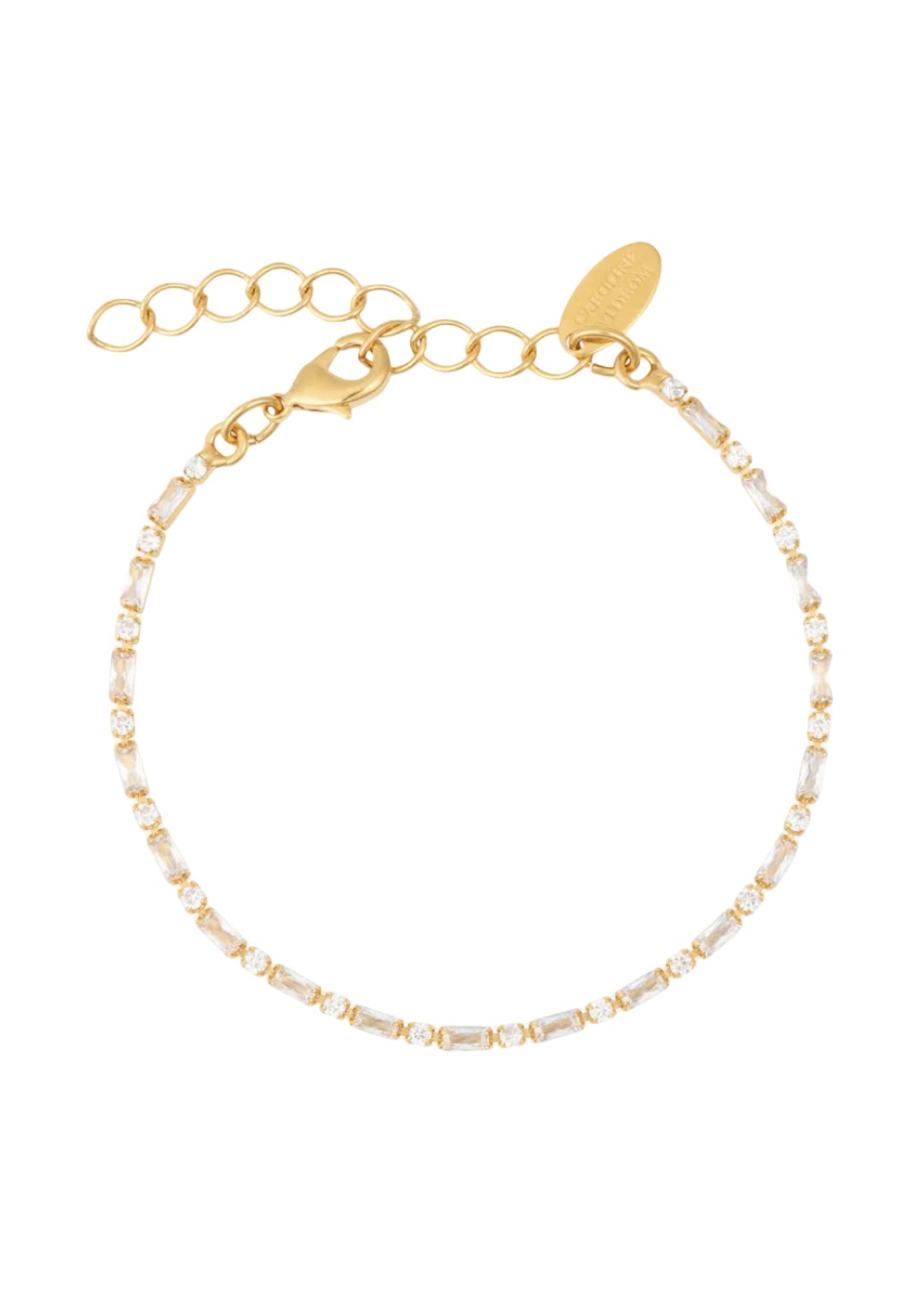 Diskret glans med uimotståelig sjarm. Evelyne-armbåndet omslutter håndleddet ditt med skinnende krystaller for et utseende som er både delikat og blendende. Et must å bruke lag på lag eller alene.