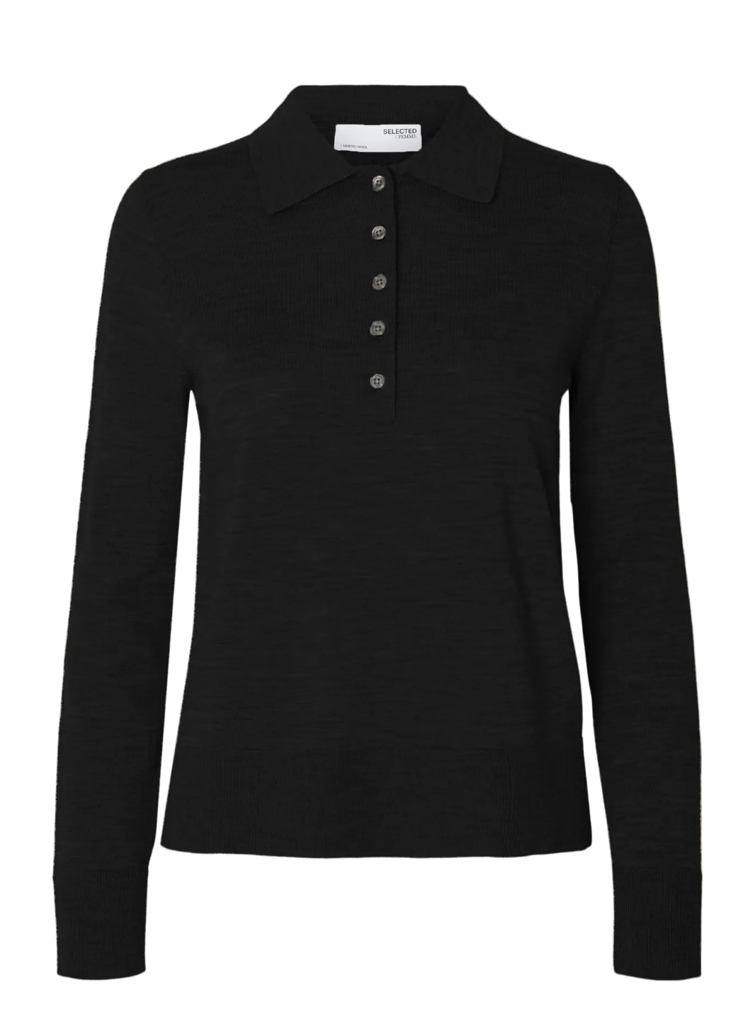 «Thea Knit Merino Collar Neck» fra Selected Femme er en sofistikert og komfortabel strikkegenser laget i myk merinoull. Den har en klassisk polo-hals som gir et stilrent uttrykk, og lange ermer med ribbestrikkede mansjetter som gir et stramt og moderne preg. Genseren har en knappestolpe i front som gjør det enkelt å justere passformen.