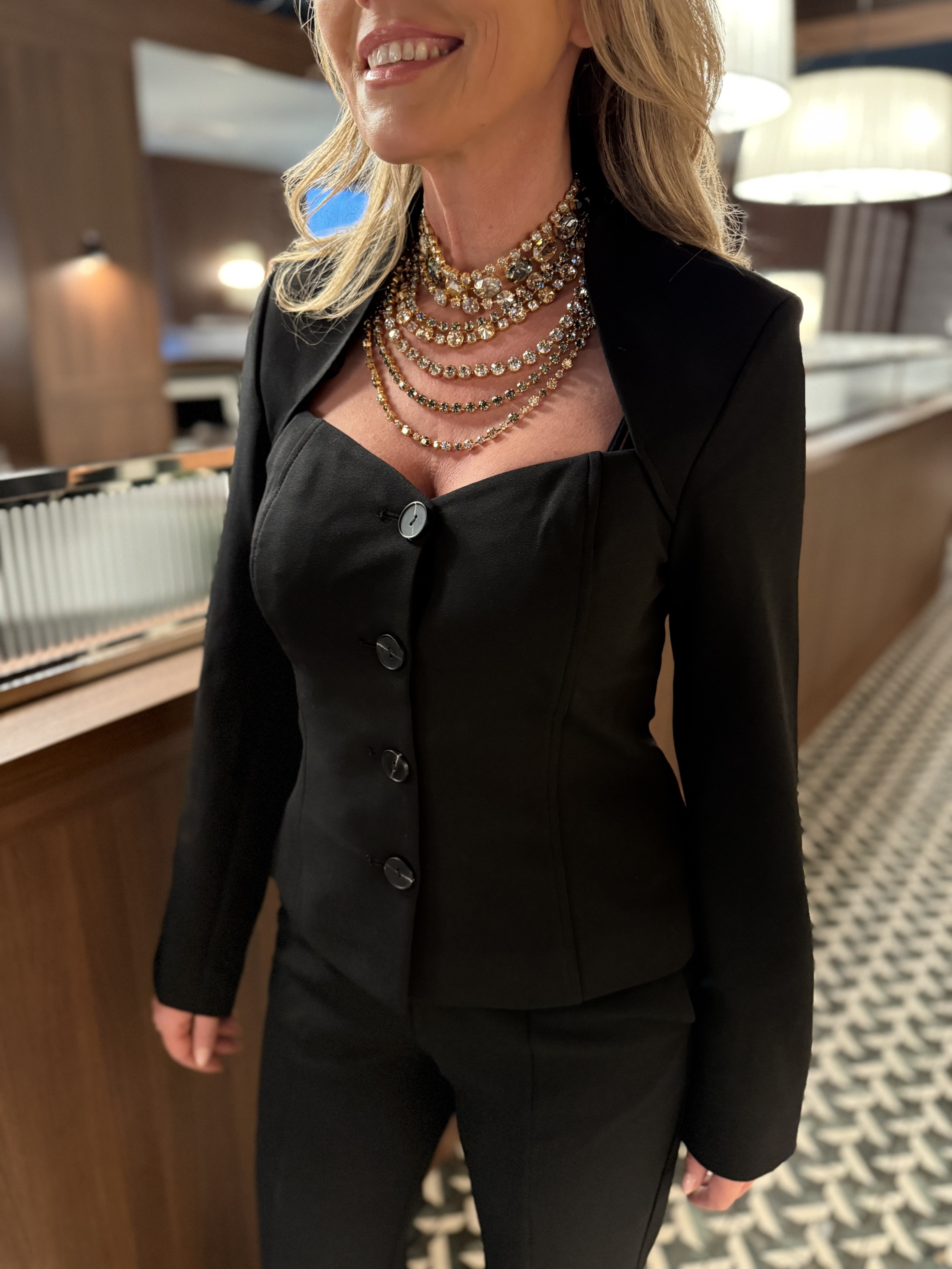 «Favo Blazer Top» fra Yas. Denne tidløse blazer toppen er et perfekt basisplagg som passer til enhver garderobe. Den har en flatterende V-hals, 7/8-ermer og knappelukking foran, med en behagelig og normal passform. Style med Favo Ankle Pant for komplett look!