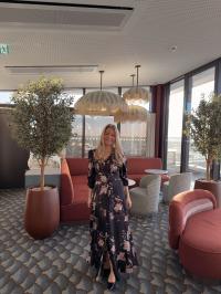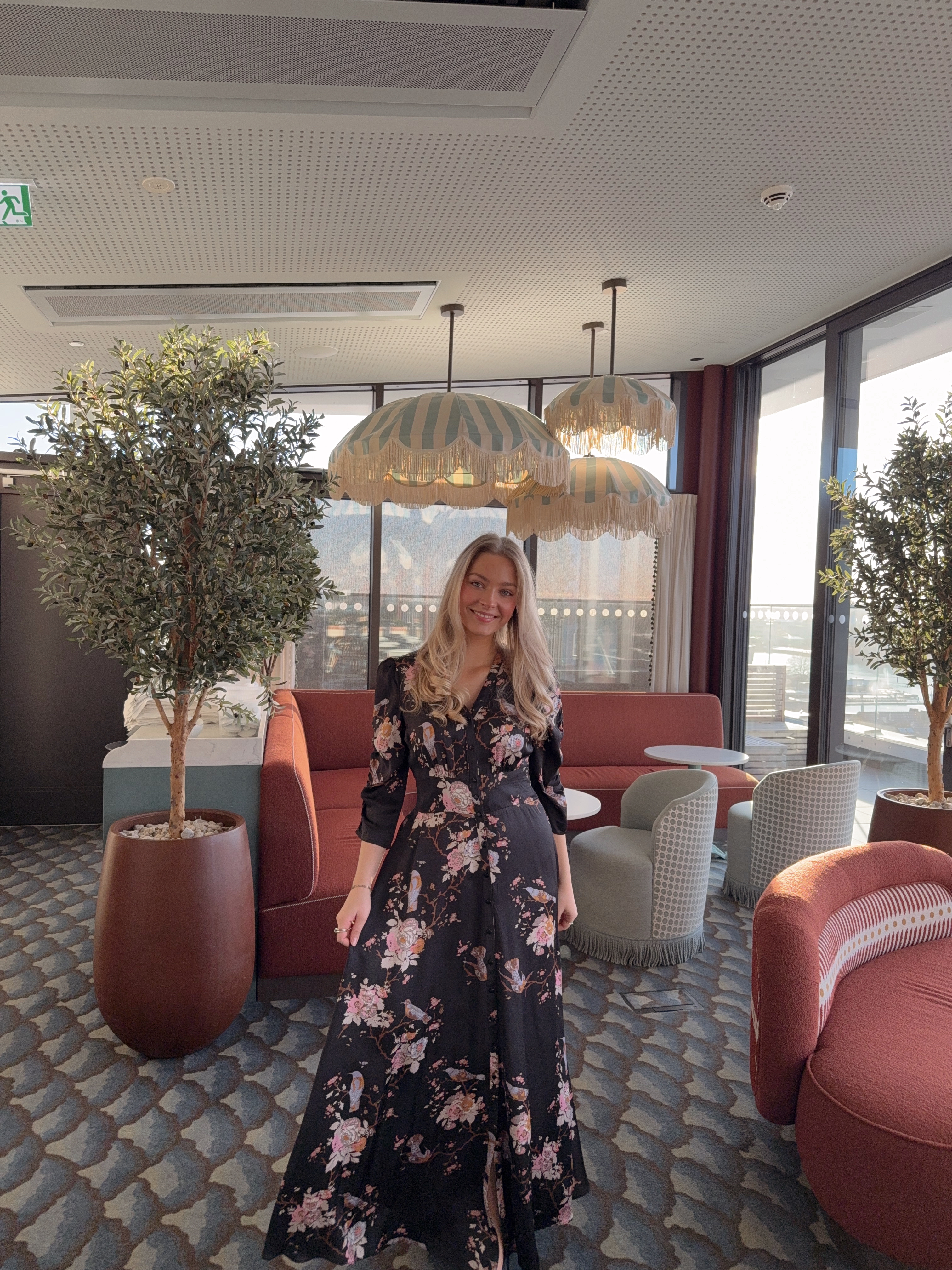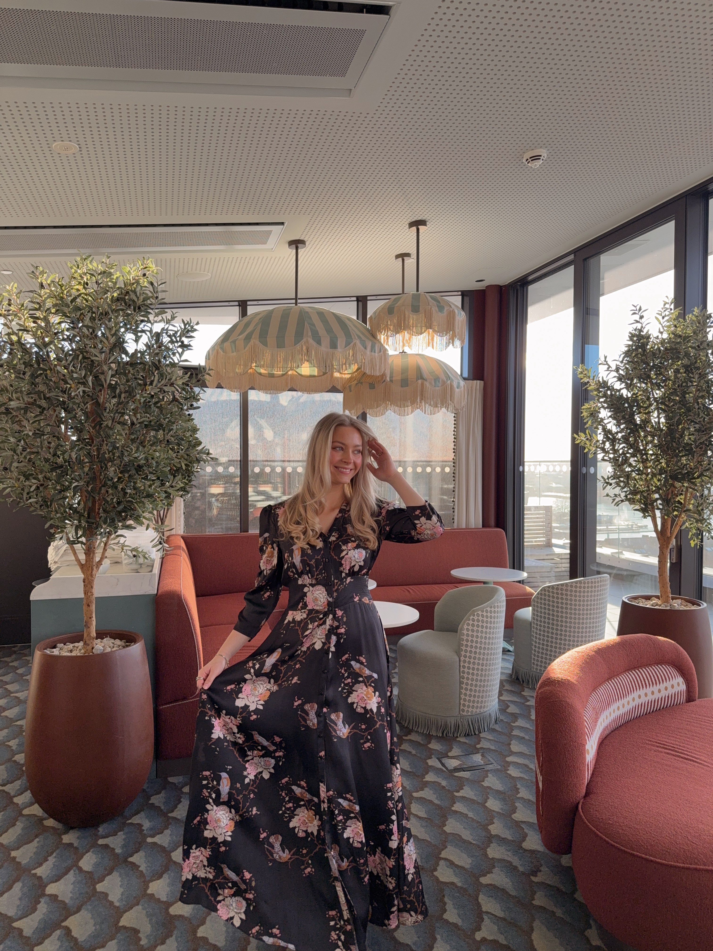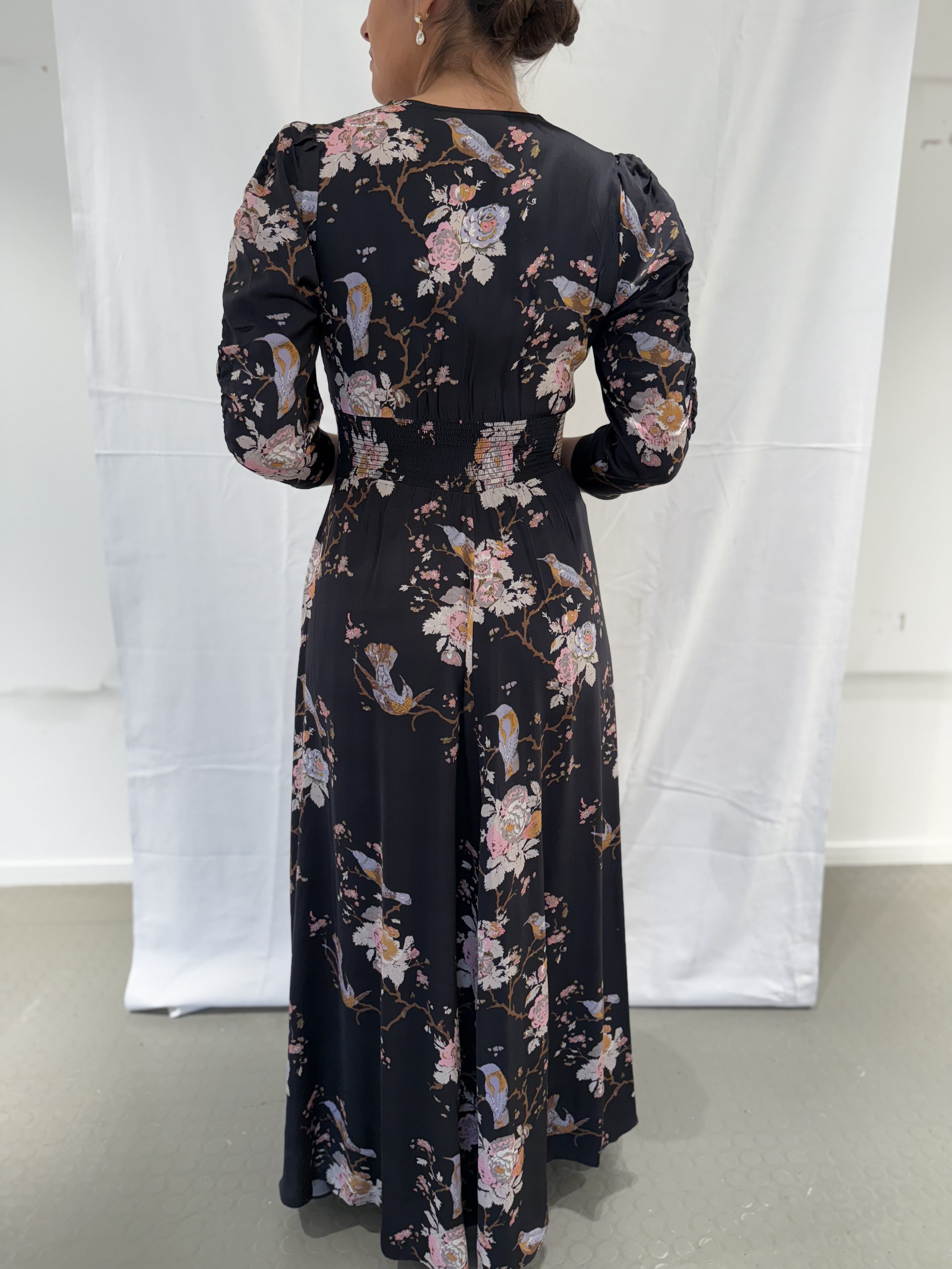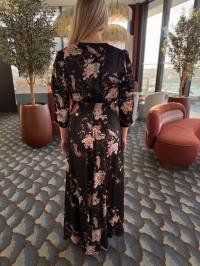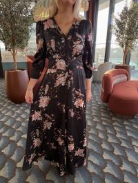 «Satin button down dress» fra byTiMo er en vakker og lang kjole som er laget av glatt satengstoff med et nydelig print. Kjolen har en elegant button-down front med matchende knapper nedover. Kjolen har dyp v-hals og halvlange ermer. Strikk i midjen som gir en fin innsving i livet.