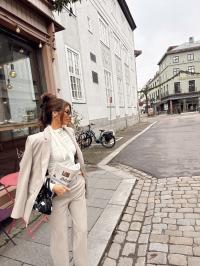 "Lina Lano High Neck Top" fra Selected Femme. Basic men super kul langermet topp! Denne toppen har en tettsittende passform og lenge ermer. Halsen er høy og har sløyfe detalj i halsen.