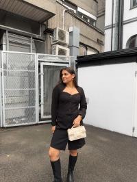 Blazer kjolen er laget av et slitesterkt vevd stoff som består av 50 % resirkulert polyester, 45 % polyester og 5 % elastan, noe som gir både komfort og god stretch.