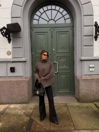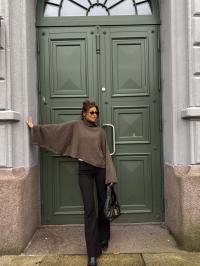 "Felina Knit Cape Roll Neck" fra Selected Femme. Lekker poncho med høy hals. Strikken har lange vide ermer som går an å kneppes opp for å lage en poncho. Super kul over jeans, kjoler ect..