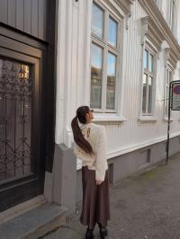 Laget av: 52% alpakka, 30% nylon, 16% akryl, 2% elastan