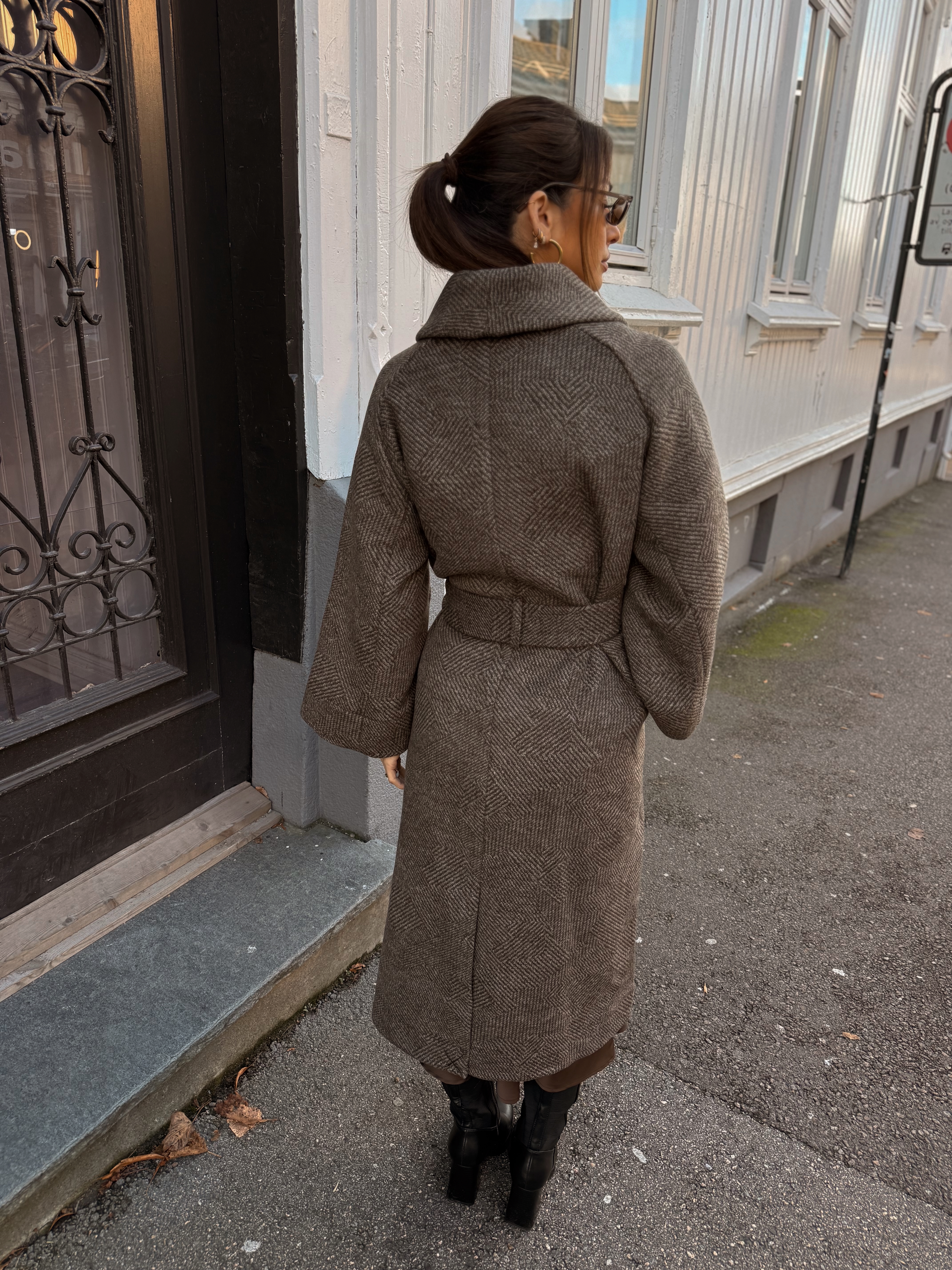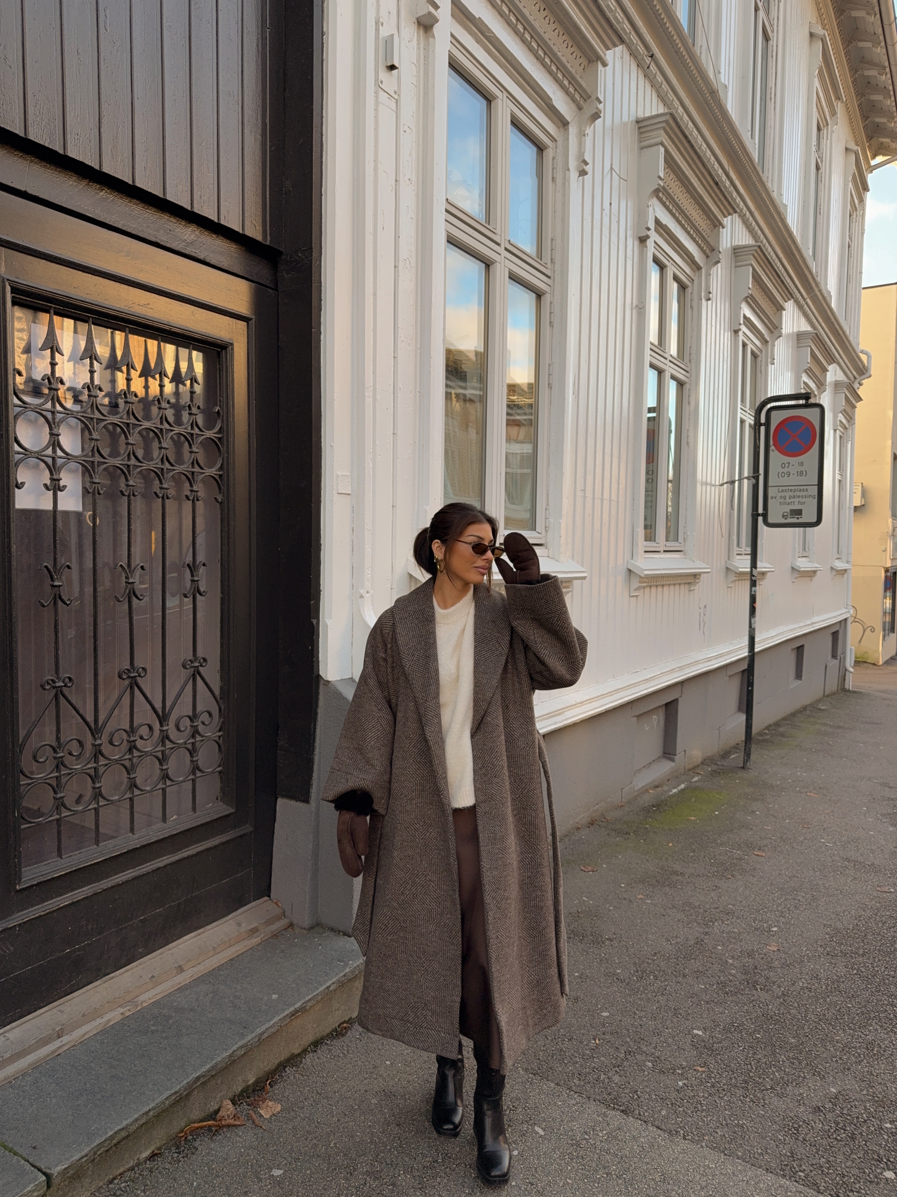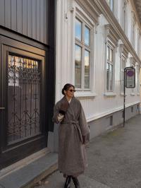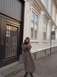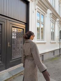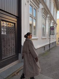 Ida Sleeve Wool Blend Coat er en stilig og komfortabel kåpe som er perfekt for høst- og vintersesongen. Den er laget av en blanding av ull og andre materialer, som gir varme og slitestyrke. Kåpen har en avslappet passform med 7/8 lange ermer og en klassisk krage. Den har også praktiske lommer for å oppbevare småting.