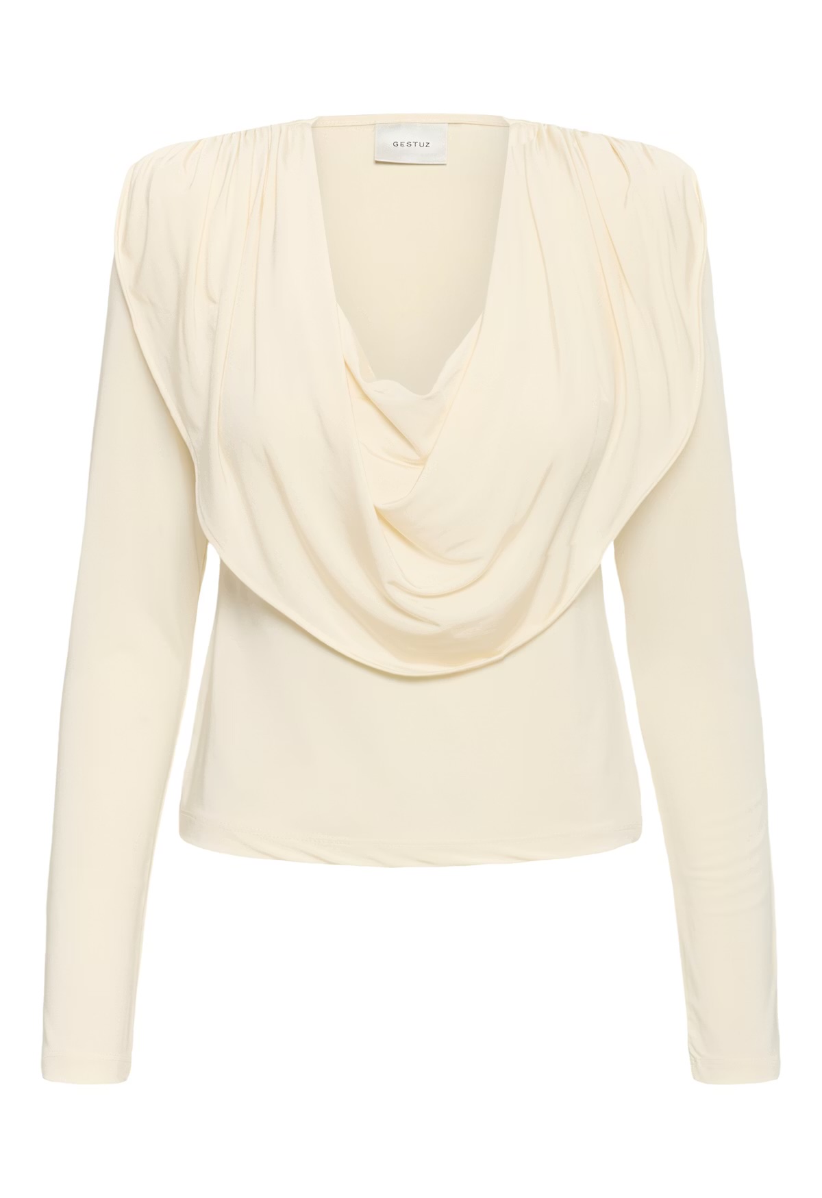 «Laily top» fra Gestuz. Denne vakre toppen har drapert hals og lange ermer, og kombinerer et moderne snitt med mykt stoff for daglig komfort.