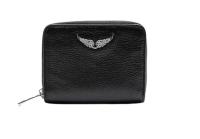 «Mini grained leather» fra Zadig & Voltaire er kull lommebok i mykt, sort skinn. Mini ZV Grained Leather har de ikoniske vingene dekorert med glitrende rhinestones og to mindre rom innvendig. Lukkes med glidelås.