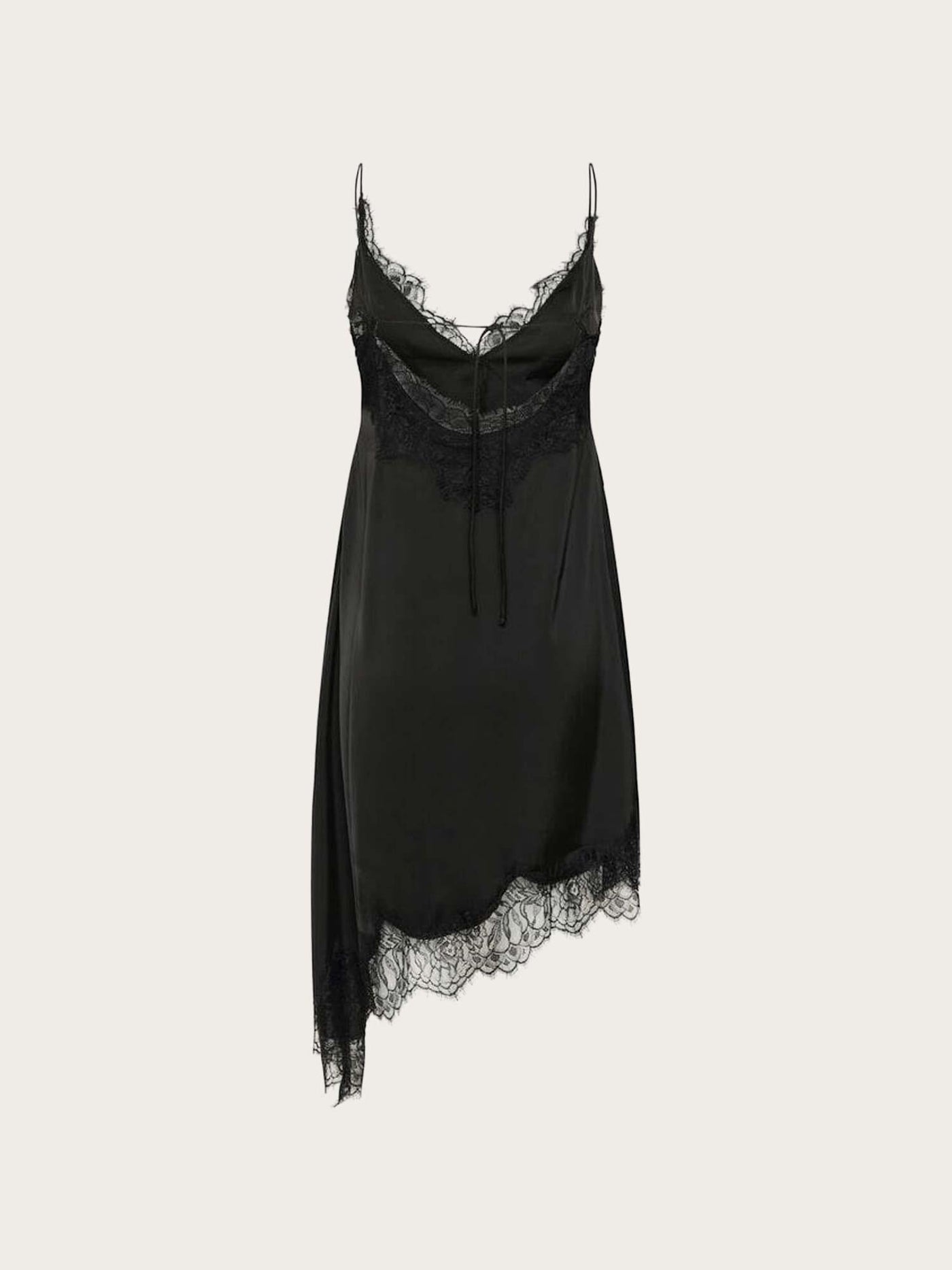 "Lalou Dress" fra Gestuz. En feminin og elegant kjole fra Gestuz med delikate blondedetaljer og et asymmetrisk uttrykk. Kjolen har normal livhøyde og en ryggløs utringning som gir et sofistikert og sensuelt preg. Snøring i ryggen og justerbare stropper sørger for optimal passform, mens slip-designet gir et lett og flytende fall. En tidløs kjole som passer perfekt til både festlige anledninger og varme sommerkvelder.