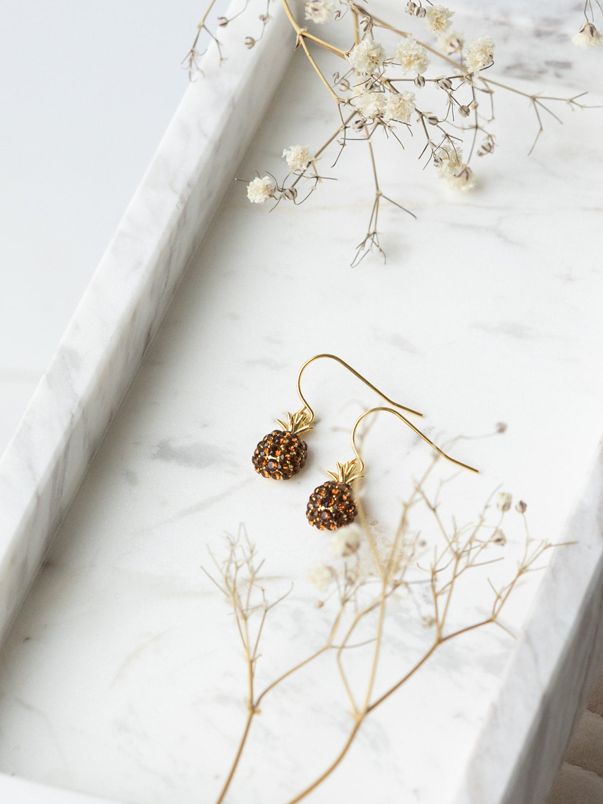 Delikat og vakre ørepynt. Små brune swarovskistener former en vakker ananas.