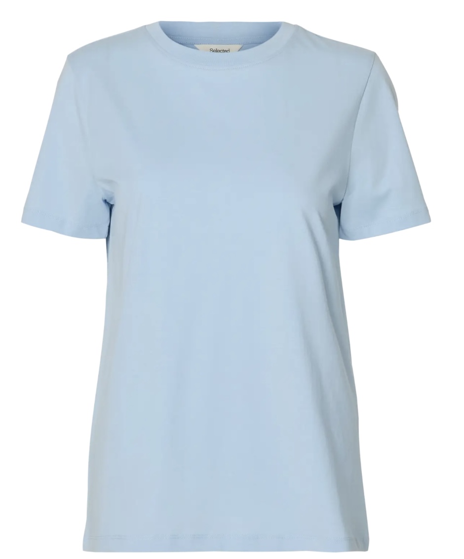 «Essential o-neck tee» fra Selected Femme. Klassisk T-skjorte med rund hals og kort erm.