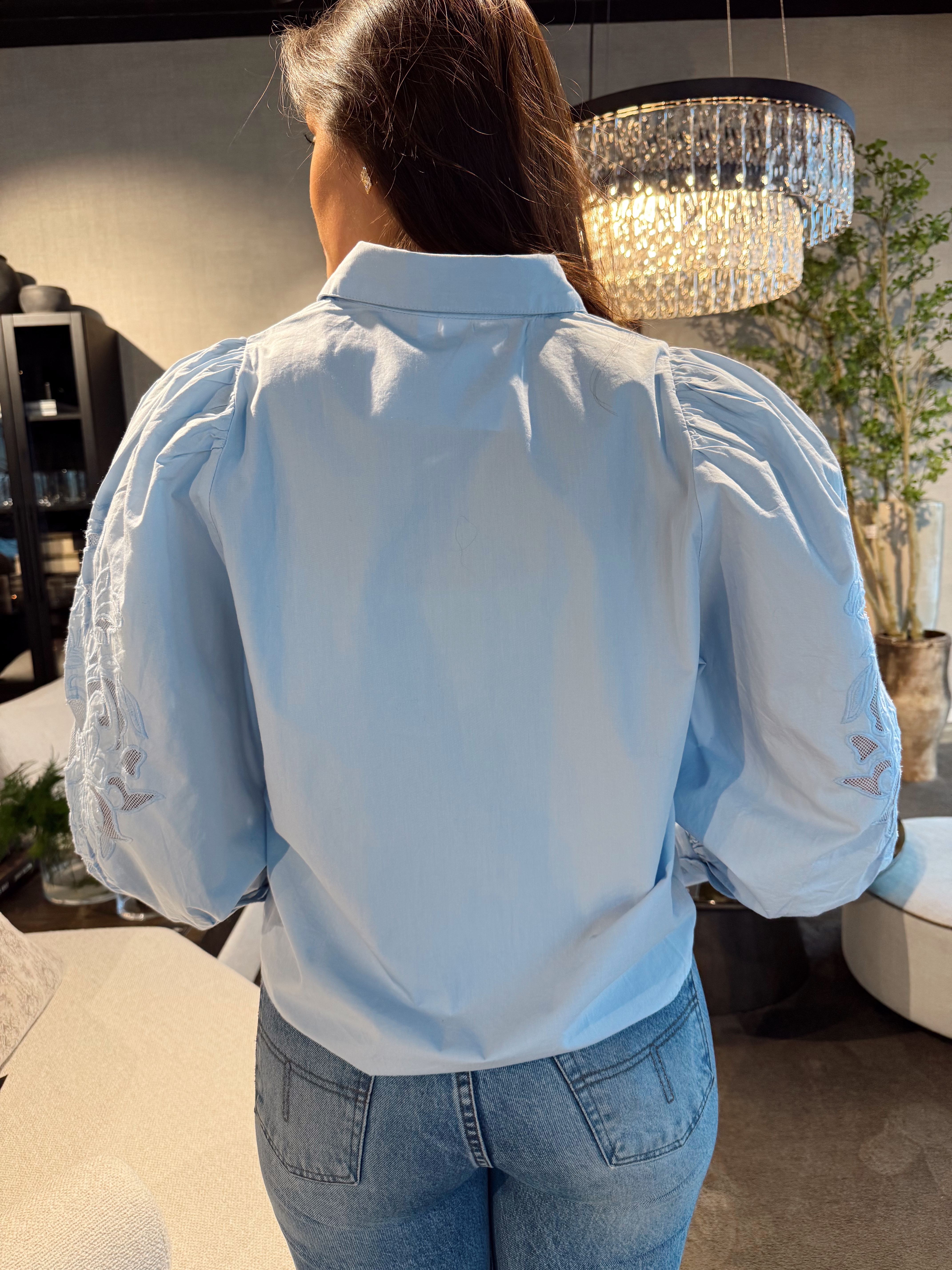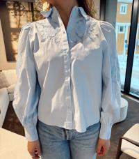 «Zimia shirt» fra YAS er en nydelig skjorte med vakre broderier. Den har krage, ballong ermer og lukkes med knapper.