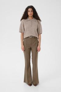 "Paula Flared Pants" fra Gestuz. Utsvingede bukser med glatt overflate, markerte pressefolder og skreddersydd midjebånd. En tidløs silhuett for et selvsikkert uttrykk.