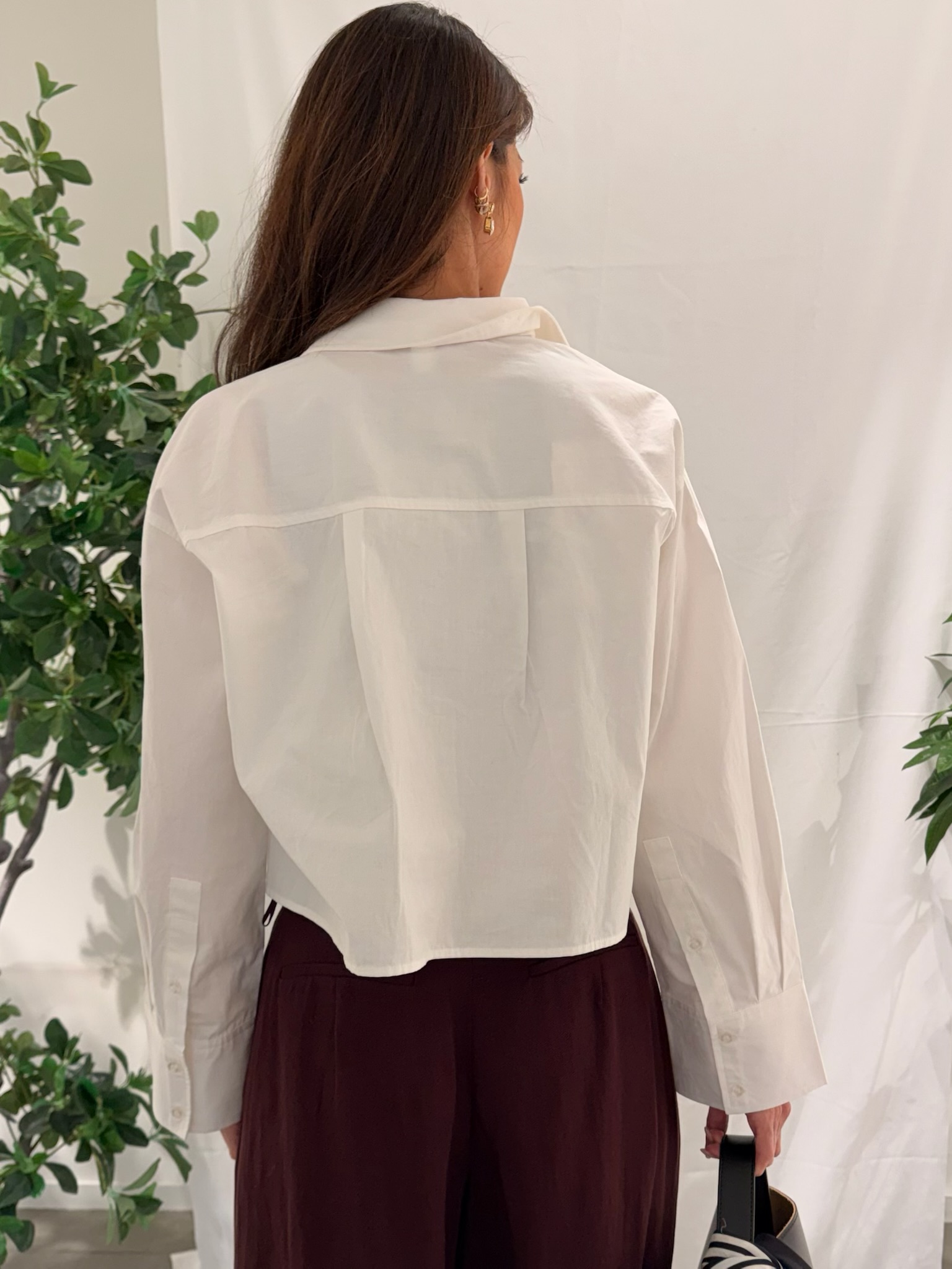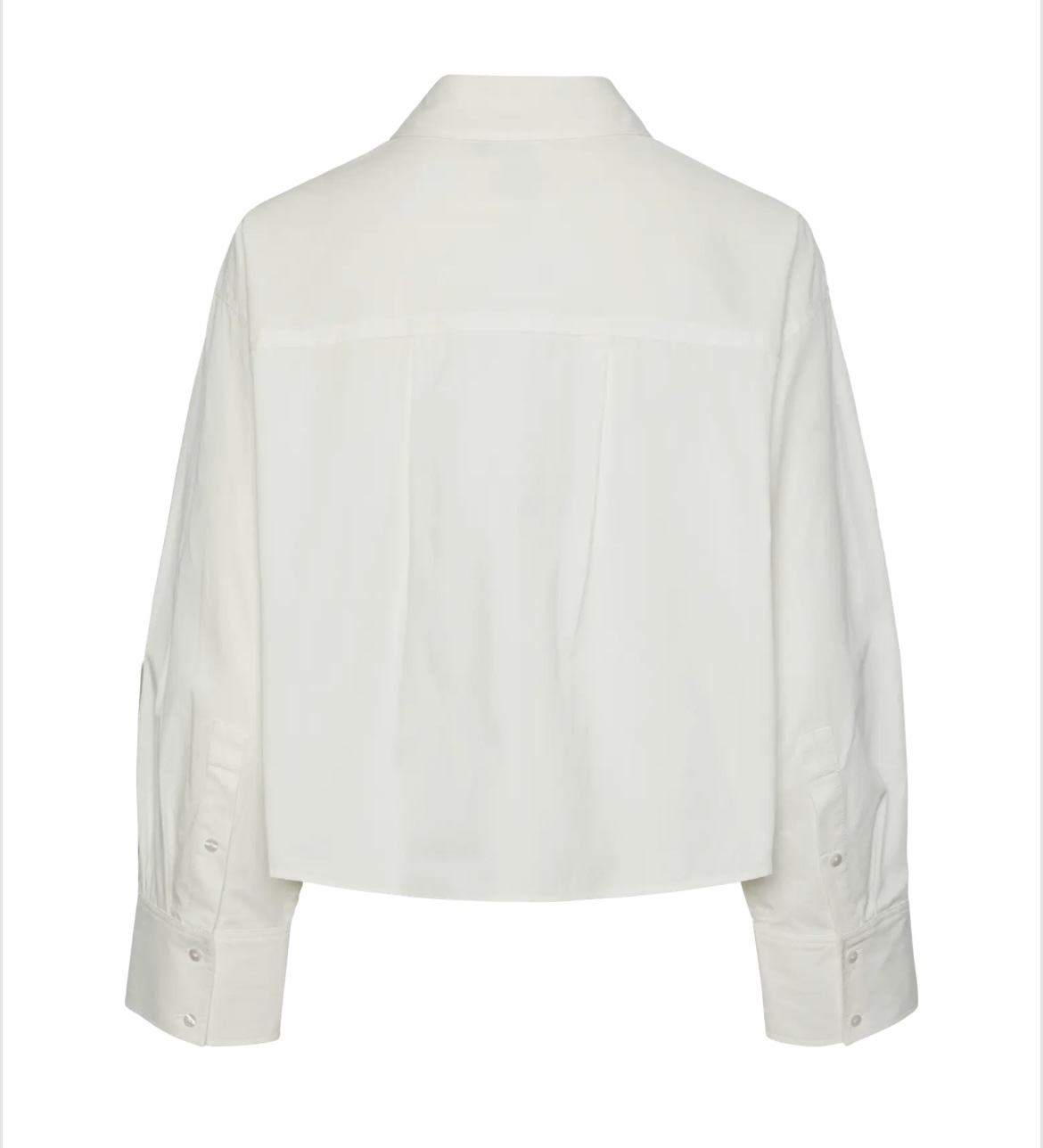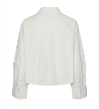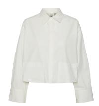 «Lee short shirt» fra YAS er en kul kort oversized hvit skjorte med krage og lang erm. Lommer foran. Lukkes med knapper.