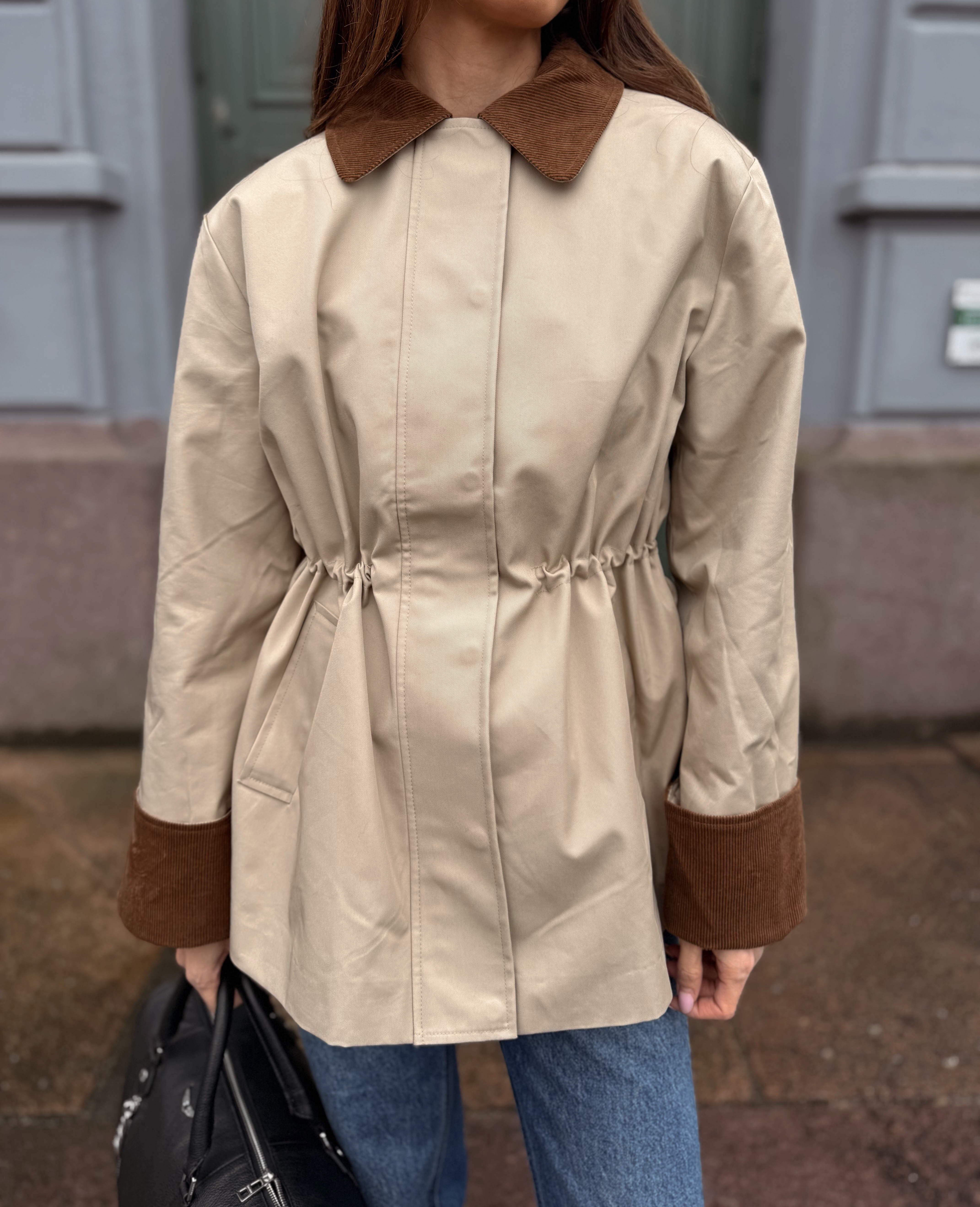 "Anca Parka Jacket" fra YAS. Denne parkasen er laget av bomull, et pustende naturmateriale som gir god komfort. Den har kontrast kordfløyels krage, lange ermer med oppbrettbare kordfløyels mansjetter og lukkes med både trykknapper og glidelås. Jakken er utstyrt med praktiske sidelommer og en elastisk strikk i livet på innsiden for en justerbar og flatterende passform.
