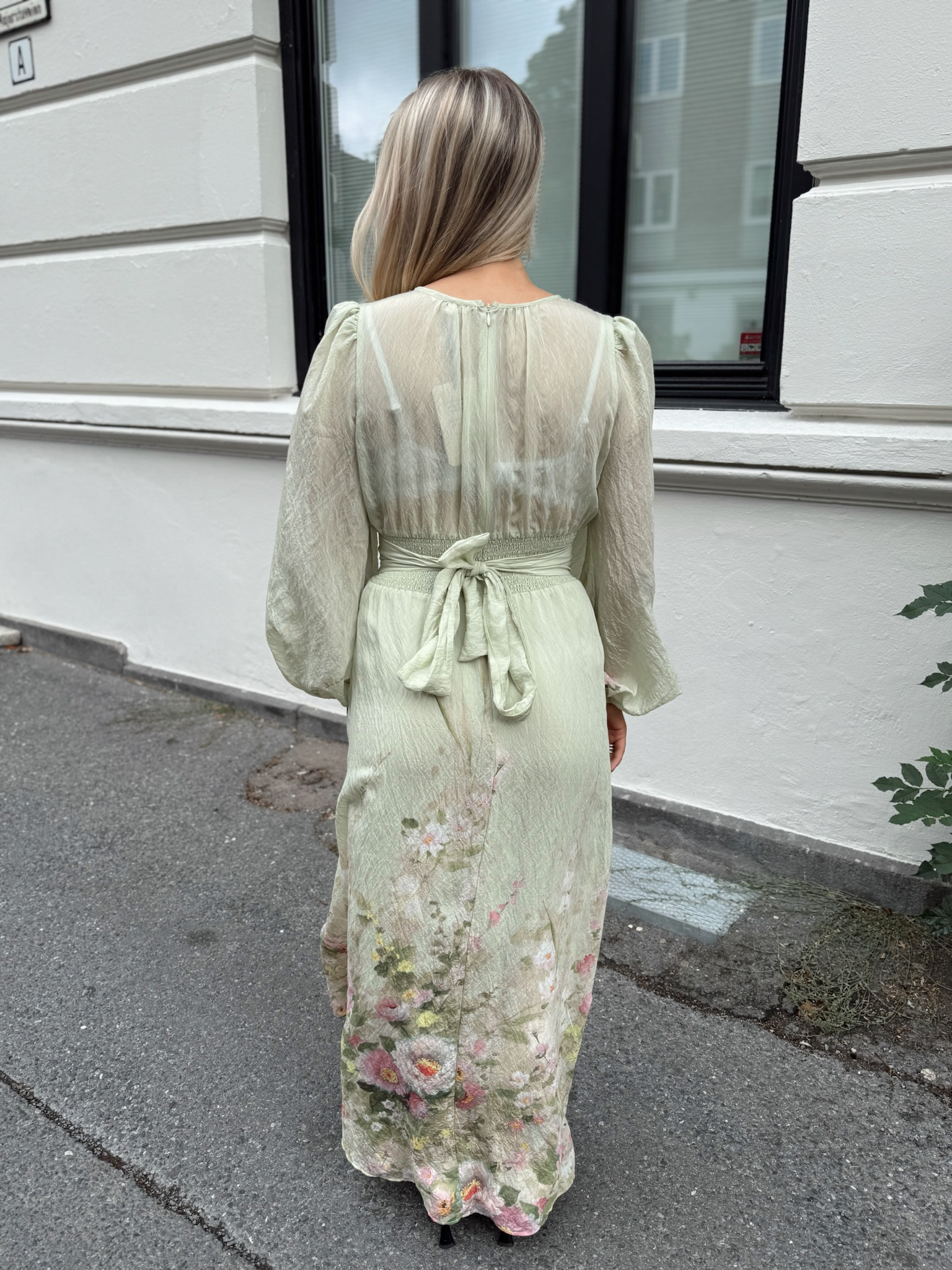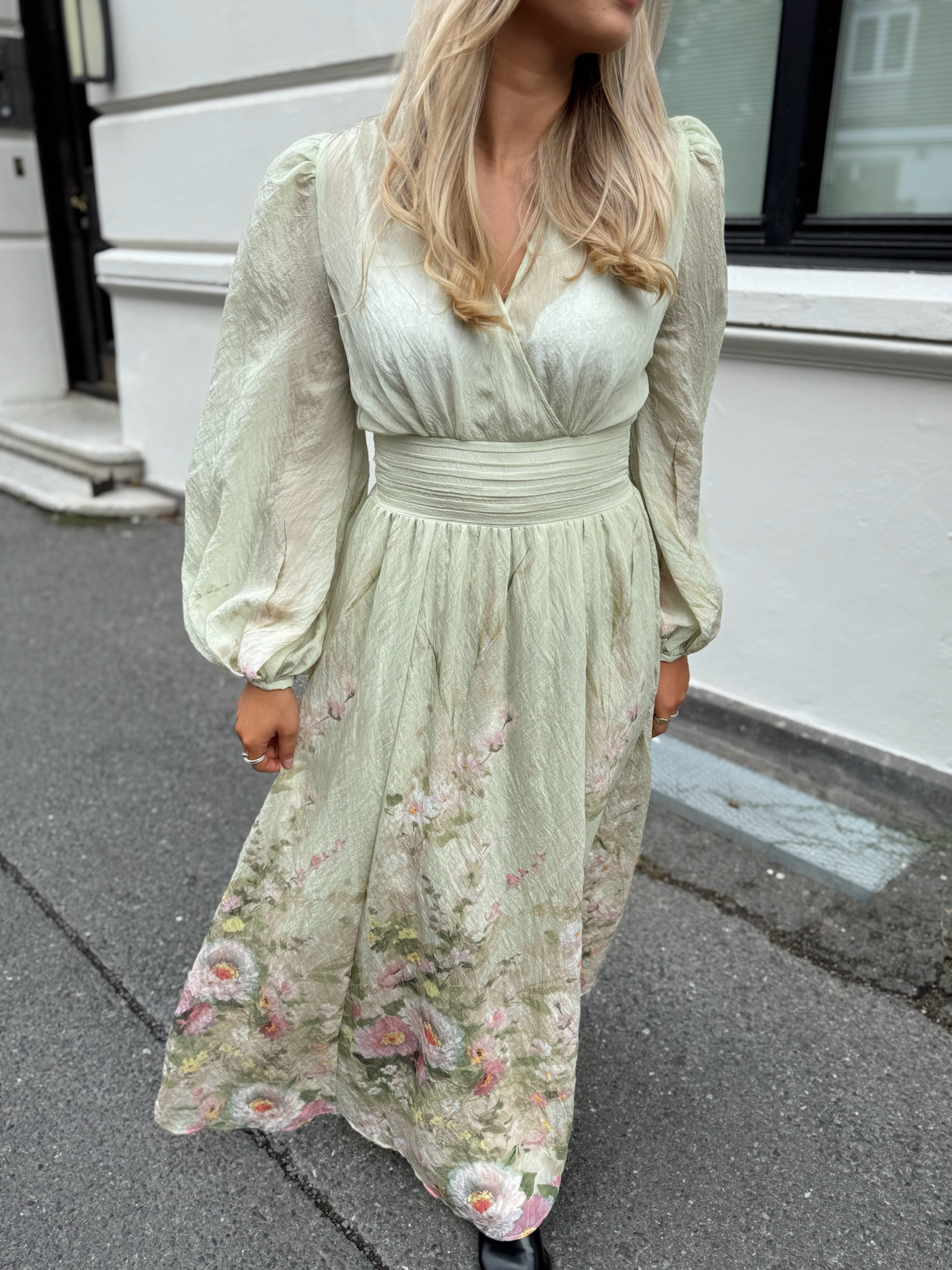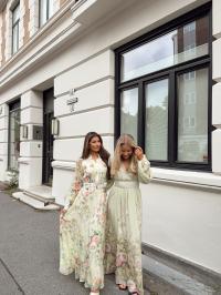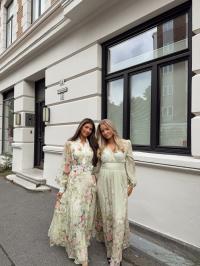 "Viscose V-Neck Dress" fra byTiMo. Viscose V-Neck Dress er kuttet i en delikat og myk FCS sertifisert viskoseblanding. Kjolen har dyp v-hals, lange ballongermer med mansjett og en innsvinget midje med smock i ryggen som sikrer en behagelig og flatterende passform. Kjolen har belte i ryggen som kan justeres og et langt flowy skjørt!