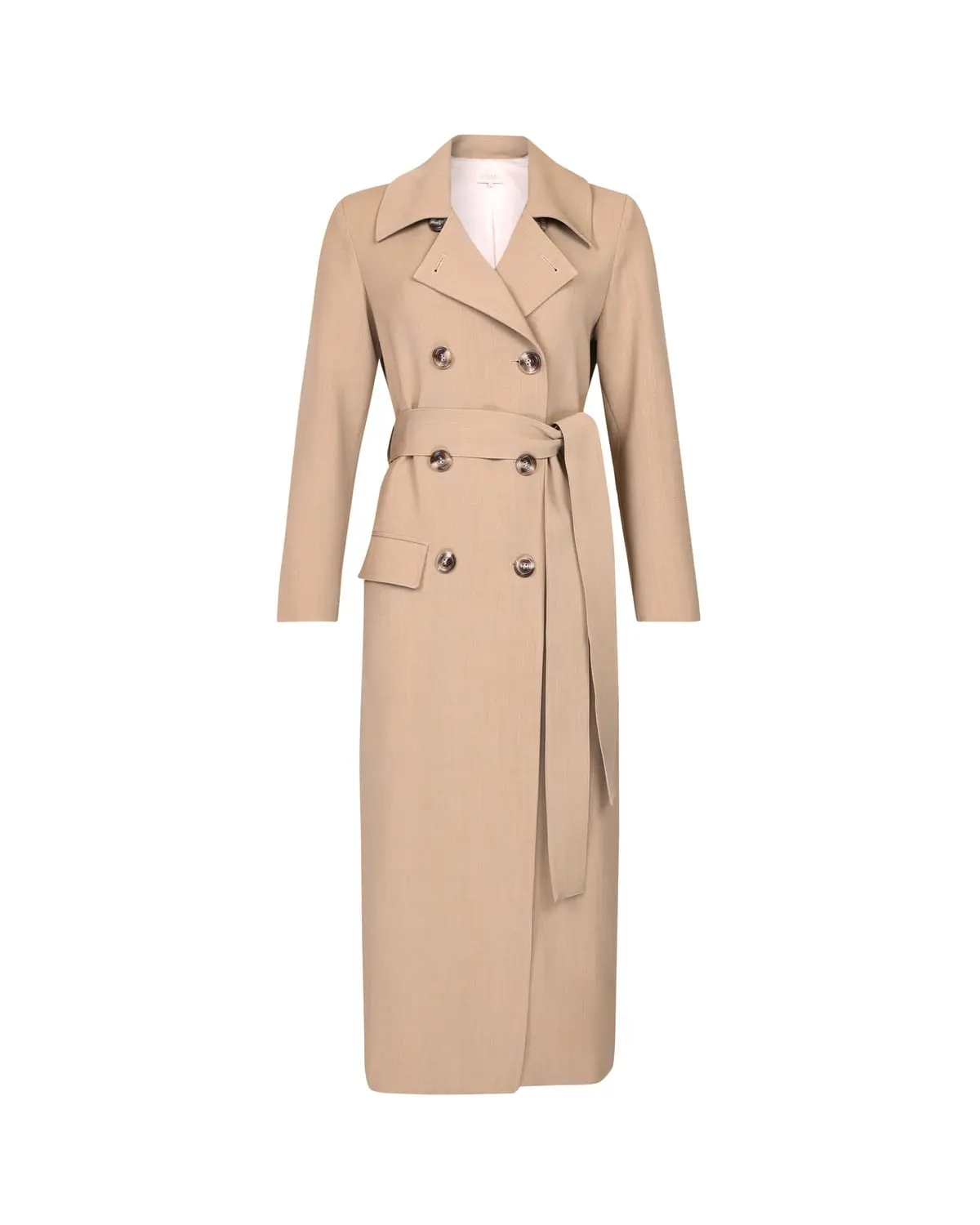 «Classique Coat» fra byTiMo. Kåpen har maxi lengde, avslappet passform, klassisk krage og har to knapperader på hver side. Kåpen kommer med et løst, matchende knytebånd. Perfekt over din favoritt,