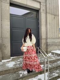 "Cotton Slub Maxi Shirt" fra byTiMo er ett vakkert skjørt med a-form. Skjørtet har ett vakkert fall med nydelig print. Skjørtet er laget i en deilig bomullskvalitet.