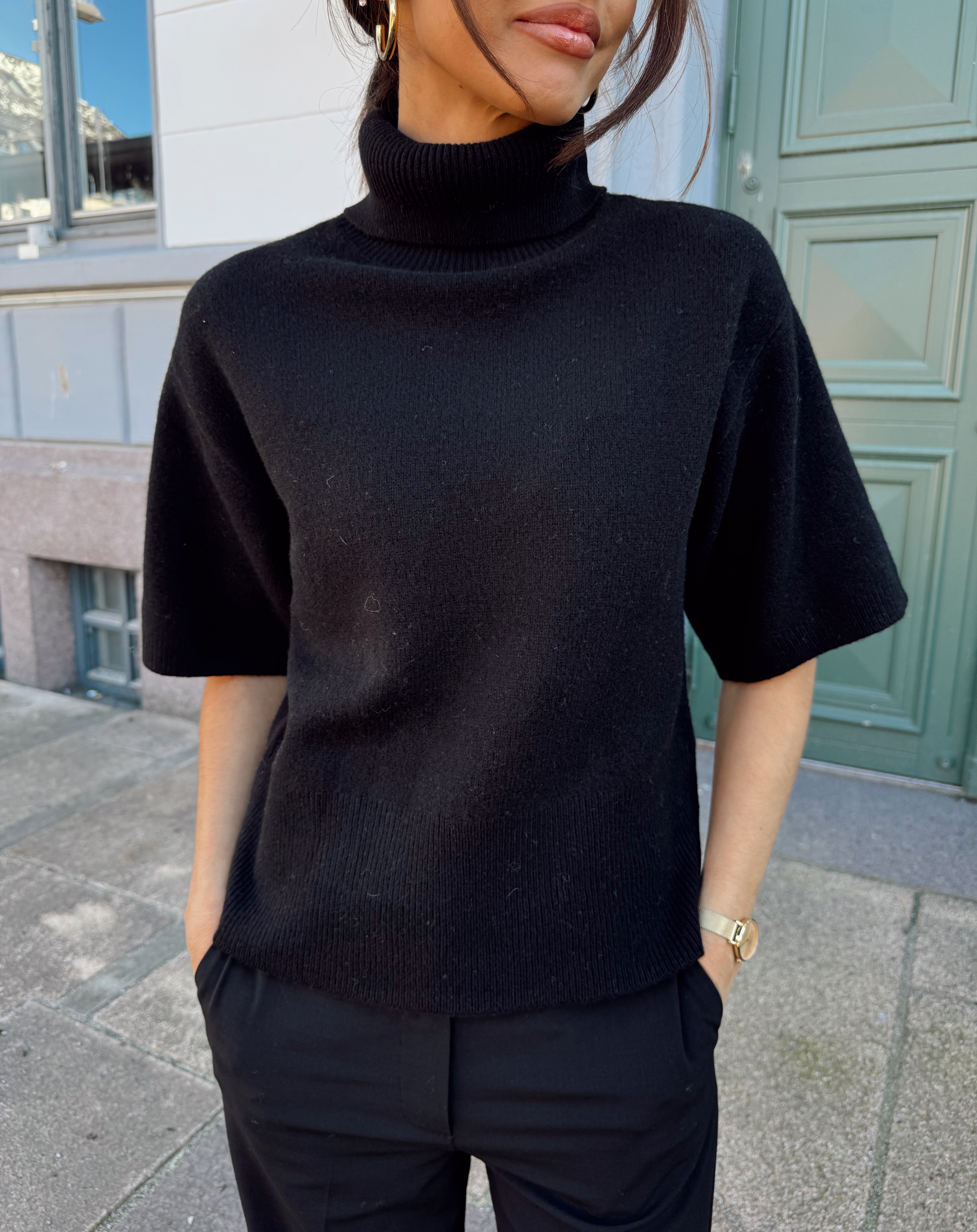 "Emila 2/4 Wool Knit Pullover" er en finstrikket genser med korte ermer. Myk og behaelig kvalitet med en børstet overflate. Den har en høy ribbestrikket hals som kan brettes eller rulles ned. Rett passform.