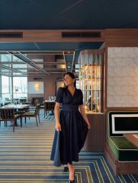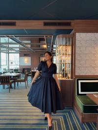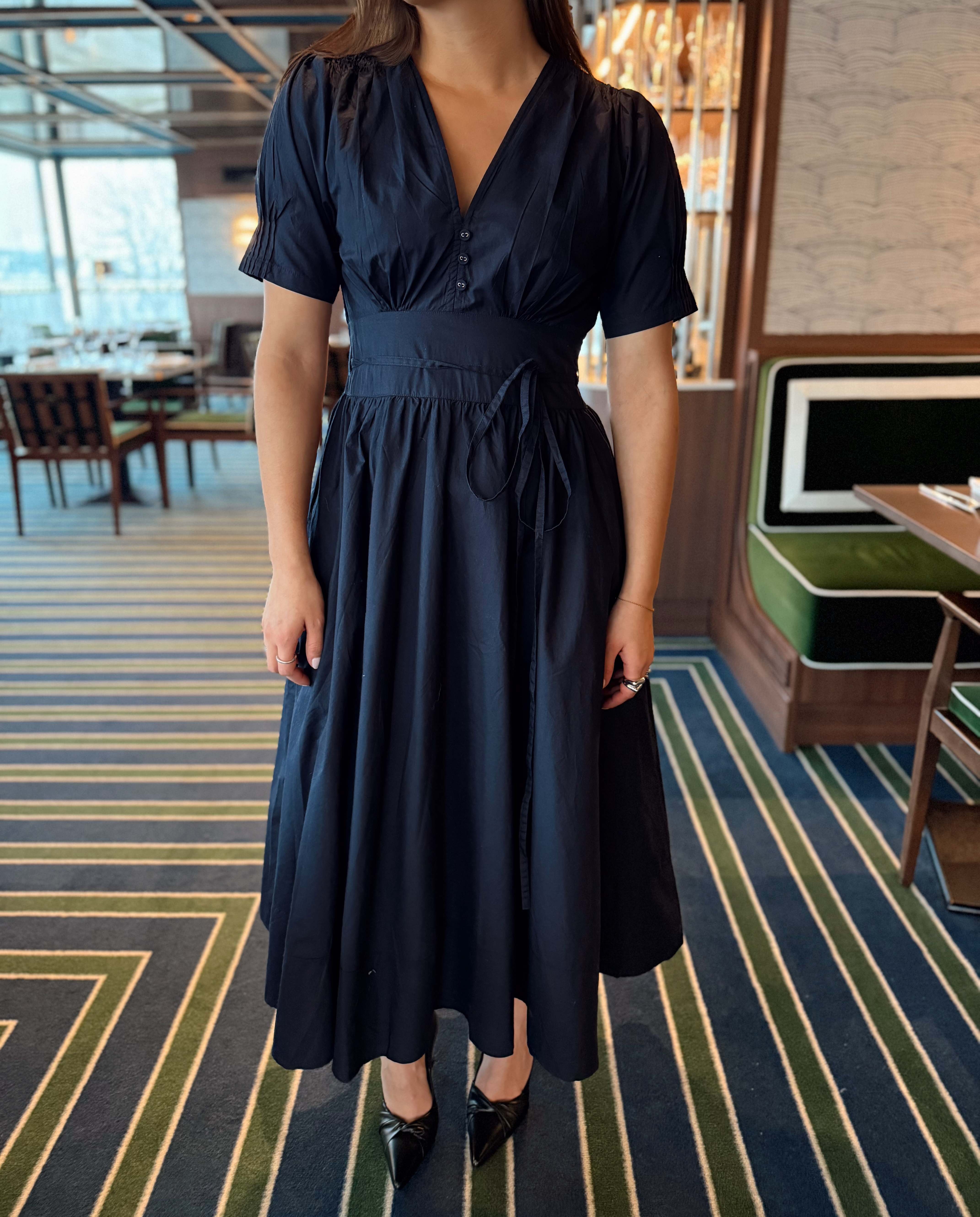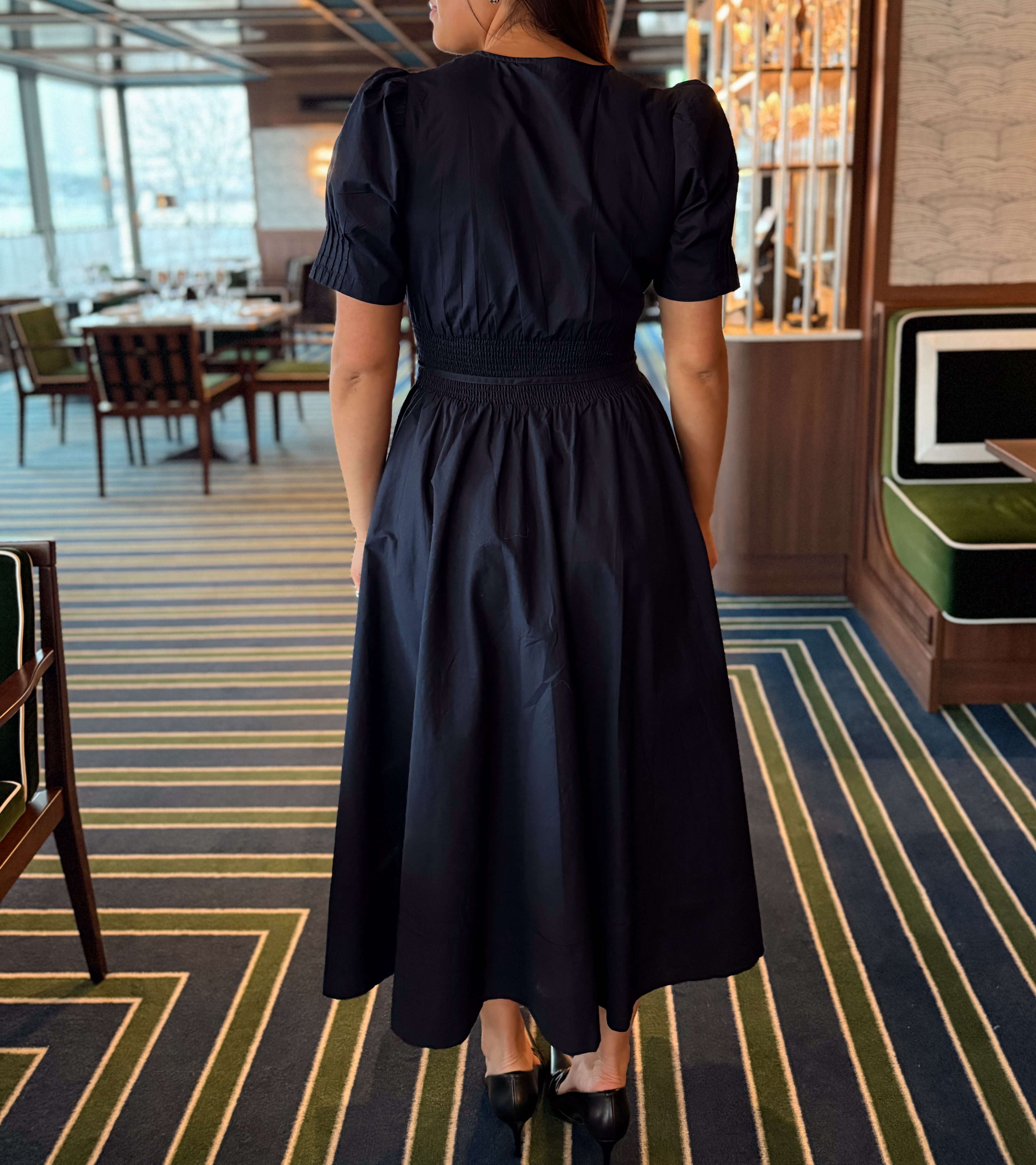 "Maria Dress" fra MissMaya er en sjarmerende nye kjole som gir garderoben din en følelse av uanstrengt eleganse. Kjolen er laget i sprø bomullspoplin og har delikate, korte puffermer samt en flatterende V-hals med påsydde knapper som gir et sofistikert uttrykk. Skjørtet har den populære silhuetten fra MissMaya sin Astrid-design, med høy fald, strikk bak for ekstra komfort og et avtagbart belte slik at du kan variere stilen. Perfekt for deg som elsker tidløs stil med en leken vri.