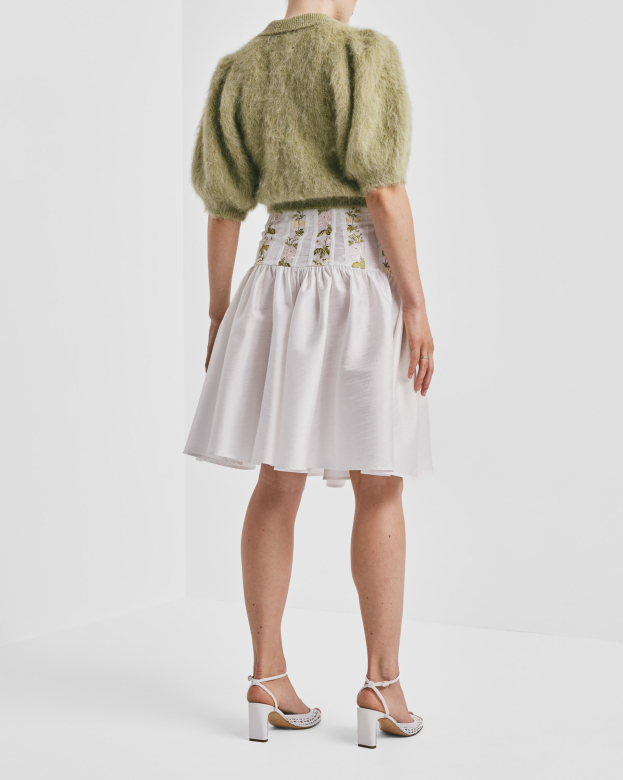 "Hairy Knit Puffed Jacket" fra byTiMo. Denne jakken er helt nydelig med kortermet puff, ribbet krave og lekre knapper. Jakken erlaget av byTiMo sitt veldig myke og fussy RAS sertifiserte garn.Toppen har rett siluett, klassisk krage og puffermer!