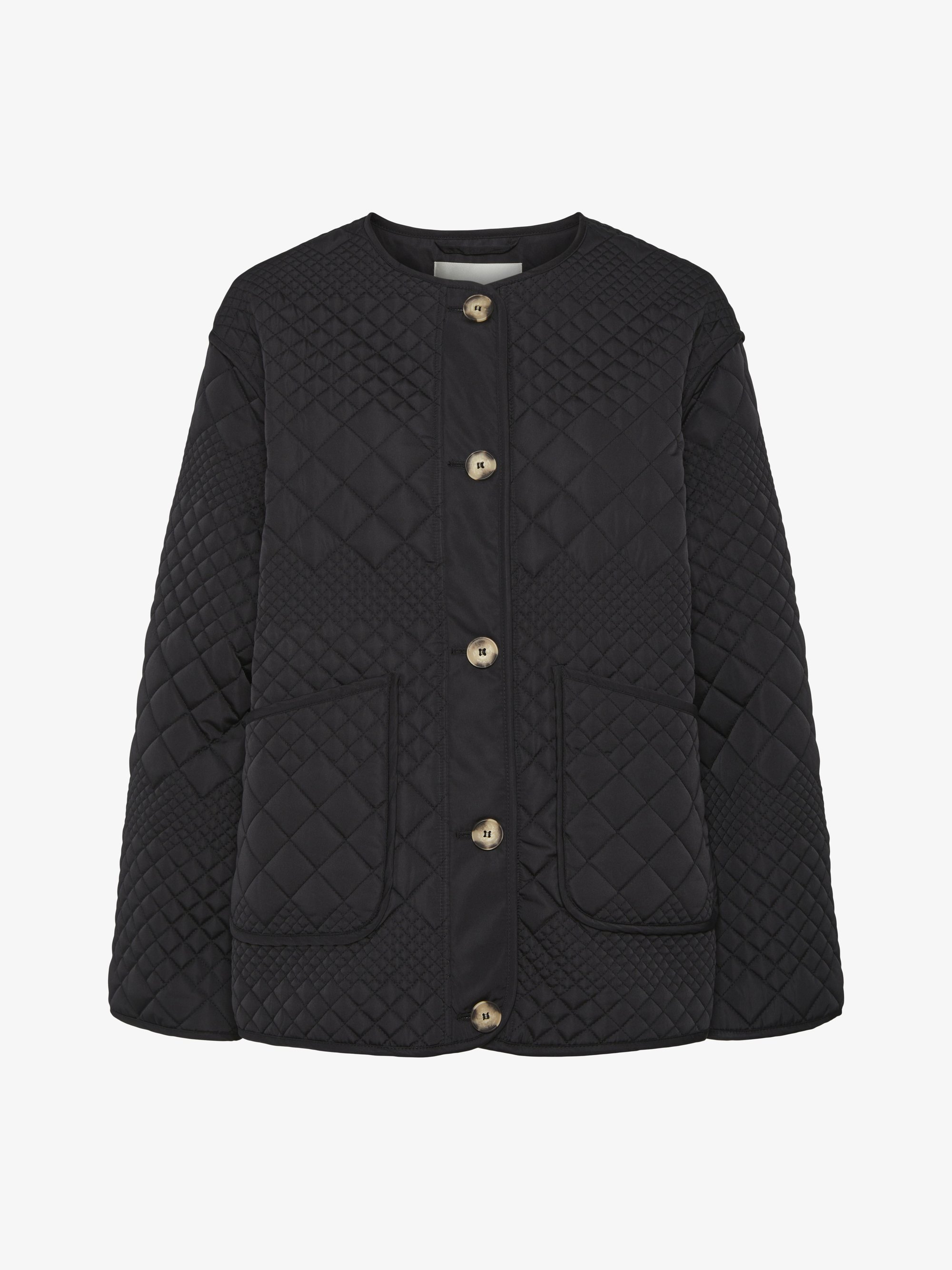 Denne quiltede jakken er en perfekt kombinasjon av klassisk stil og praktisk funksjon. Den lette vatteringen gjør den ideell for overgangssesongene! Jakken har rund hals, store frontlommer og lukkes med dekorative knapper som gir et sofistikert uttrykk. Passer like godt over en chunky strikkegenser som til en lett kjole for et stilig lag-på-lag-antrekk.
