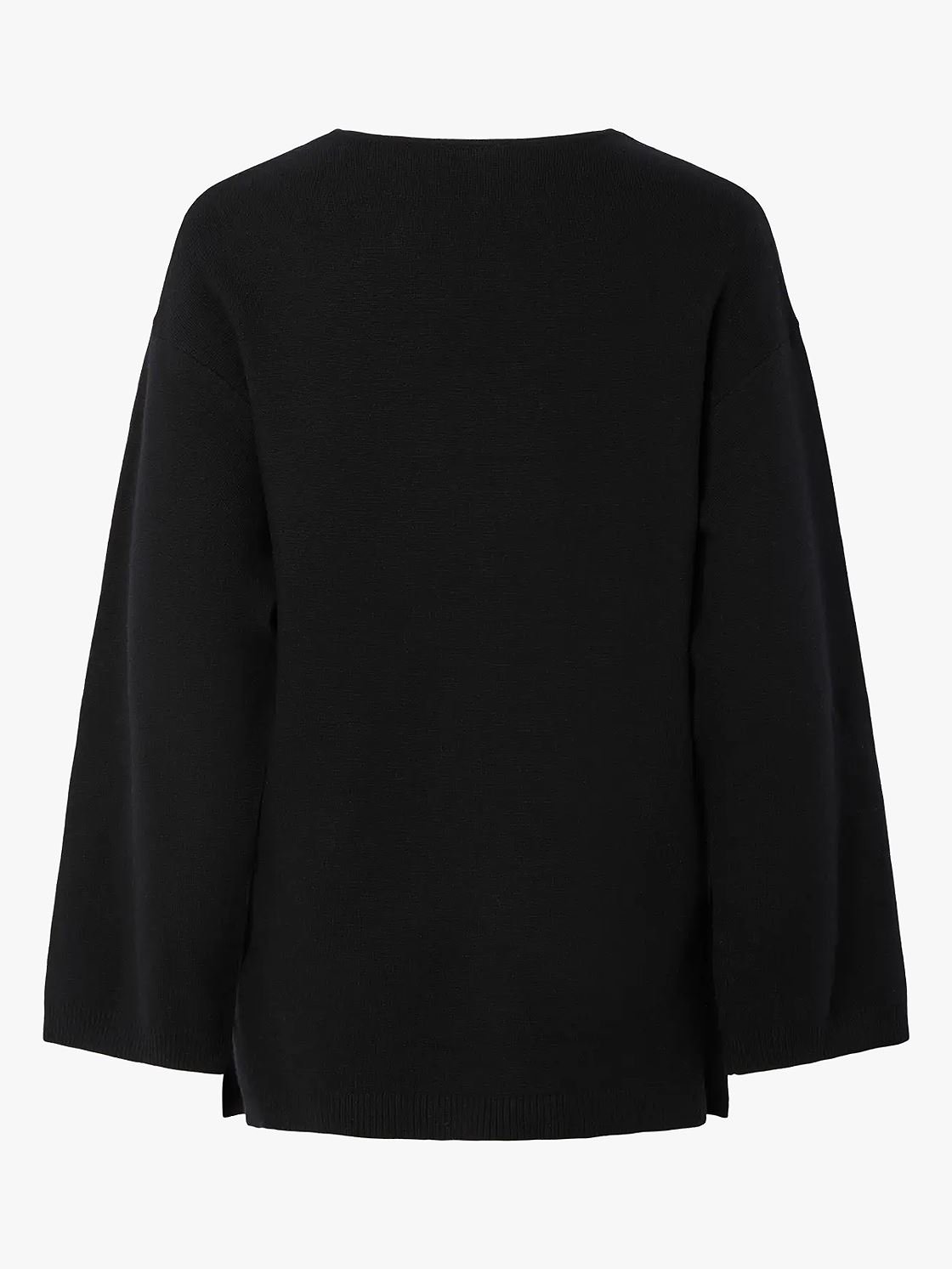 "Elma V-Neck Knit Pullover" fra Yas. Denne strikkegenseren er akkurat det du trenger for å løfte hverdagslooken med minimal innsats. Den er laget i en deilig, strikket kvalitet som føles luksuriøst myk mot huden – en sånn genser du ikke har lyst til å ta av igjen. V-halsen gir en flatterende silhuett, og de droppede skuldrene sørger for en avslappet, kul passform. Med splitt i sidene og litt lengre bakdel, sitter den pent uten å stramme – perfekt til både jeans og skjørt.