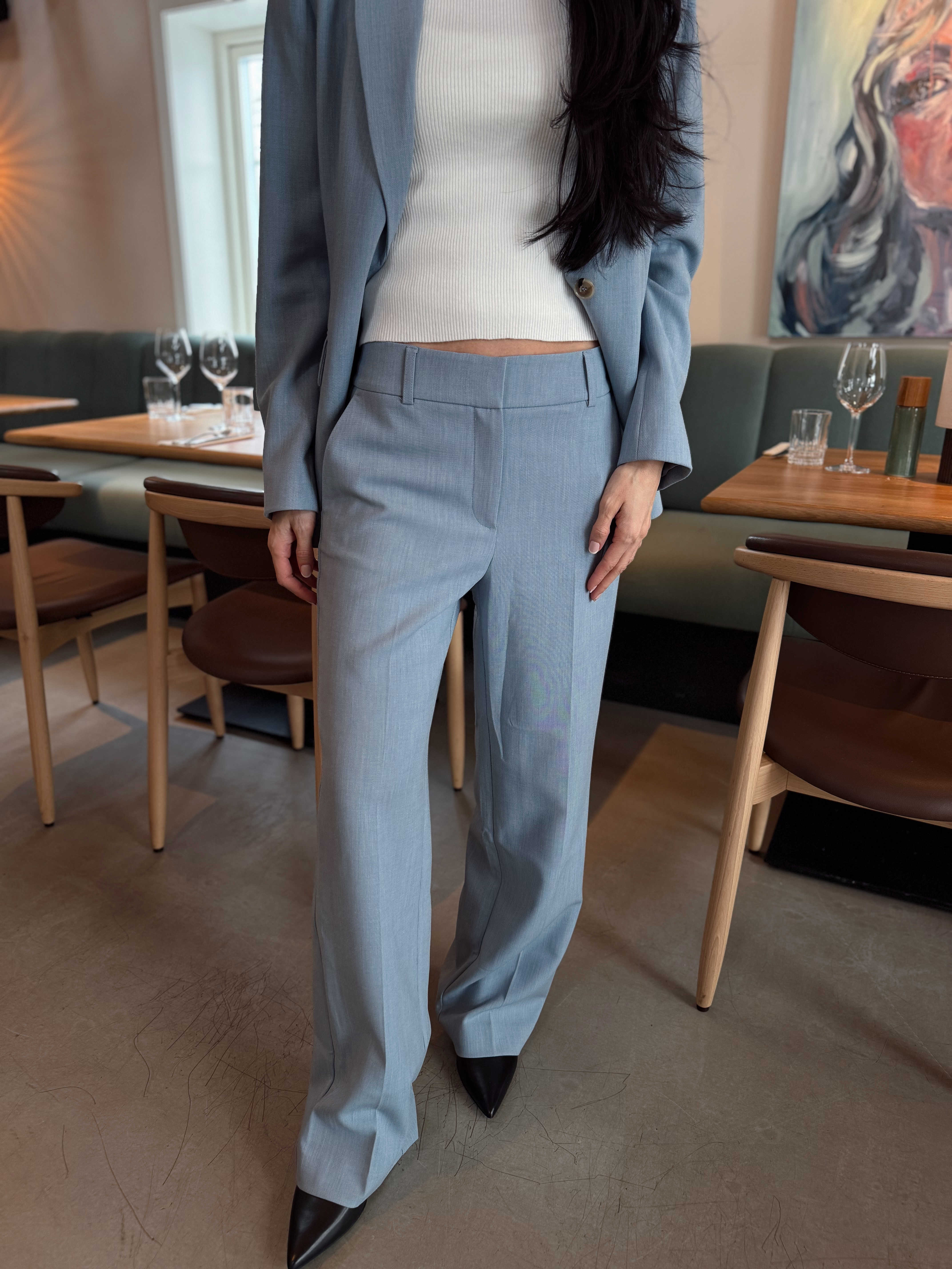 "Rita wide pant" fra Selected Femme er en klassisk sort dressbukse som passer til alt. Kan pyntes med en lekker bluse eller like fint med en strikkegenser. Den sitter over rumpe og lår, mens den er løs i beina. Buksen har to lommer foran og har beltestropper.