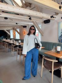 «Adoni Knitted Sweater» fra Twist&Tango. Adoni-strikkegenseren er laget av en myk bomullsblanding med rund hals og vide ermer. Et avslappet, men likevel raffinert plagg med en ren, moderne silhuett.