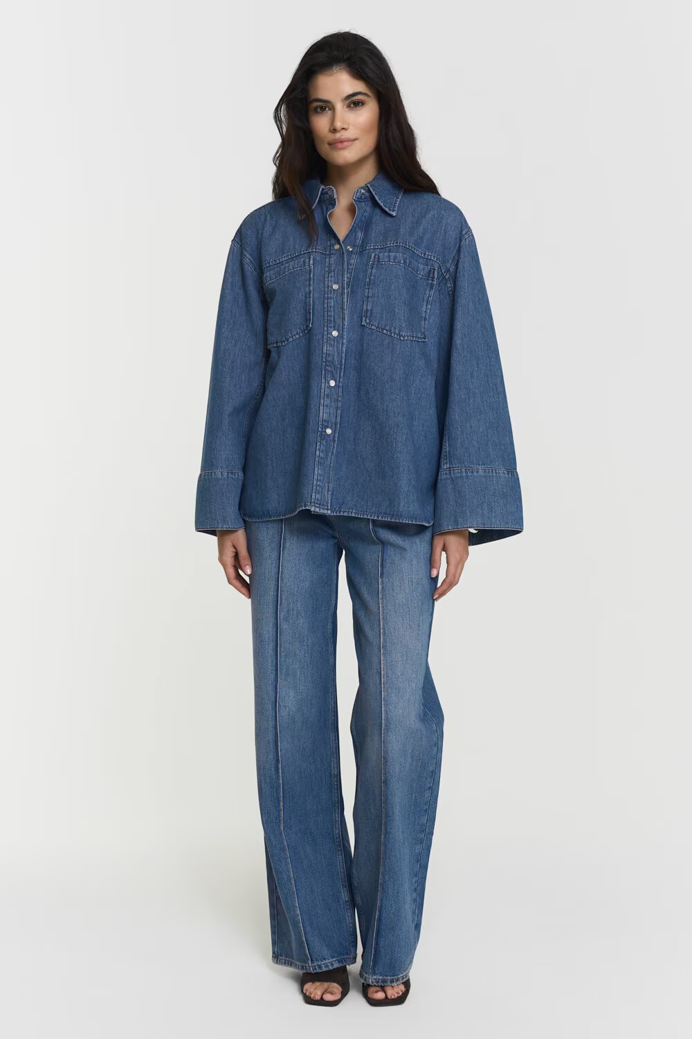 «Shari Denim Shirt» fra Twist&tango. Shari-denimskjorten kombinerer et overdimensjonert design med raffinerte knappedetaljer. Den har vide ermer og mansjetter, med store brystlommer. Oversized passform!