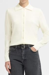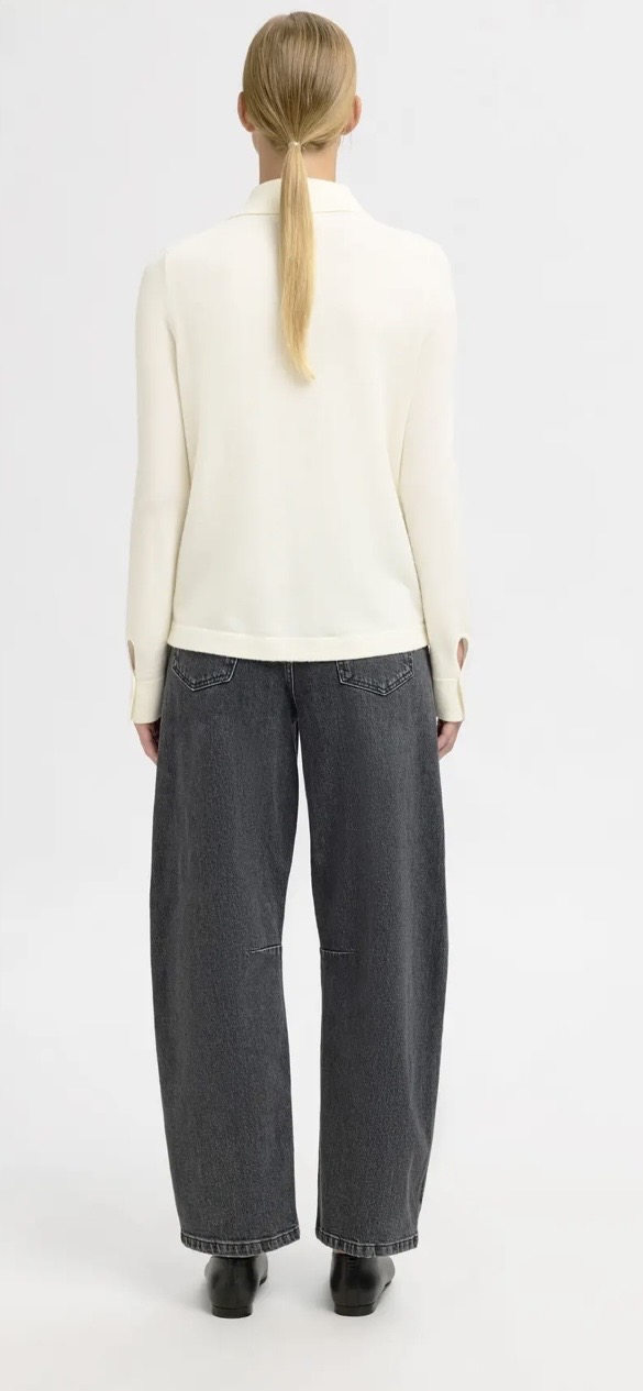 «Thea knit button collar neck» fra Selected Femme er en klassisk hvit cardigan med krage og lang erm. Lukkes med knapper.